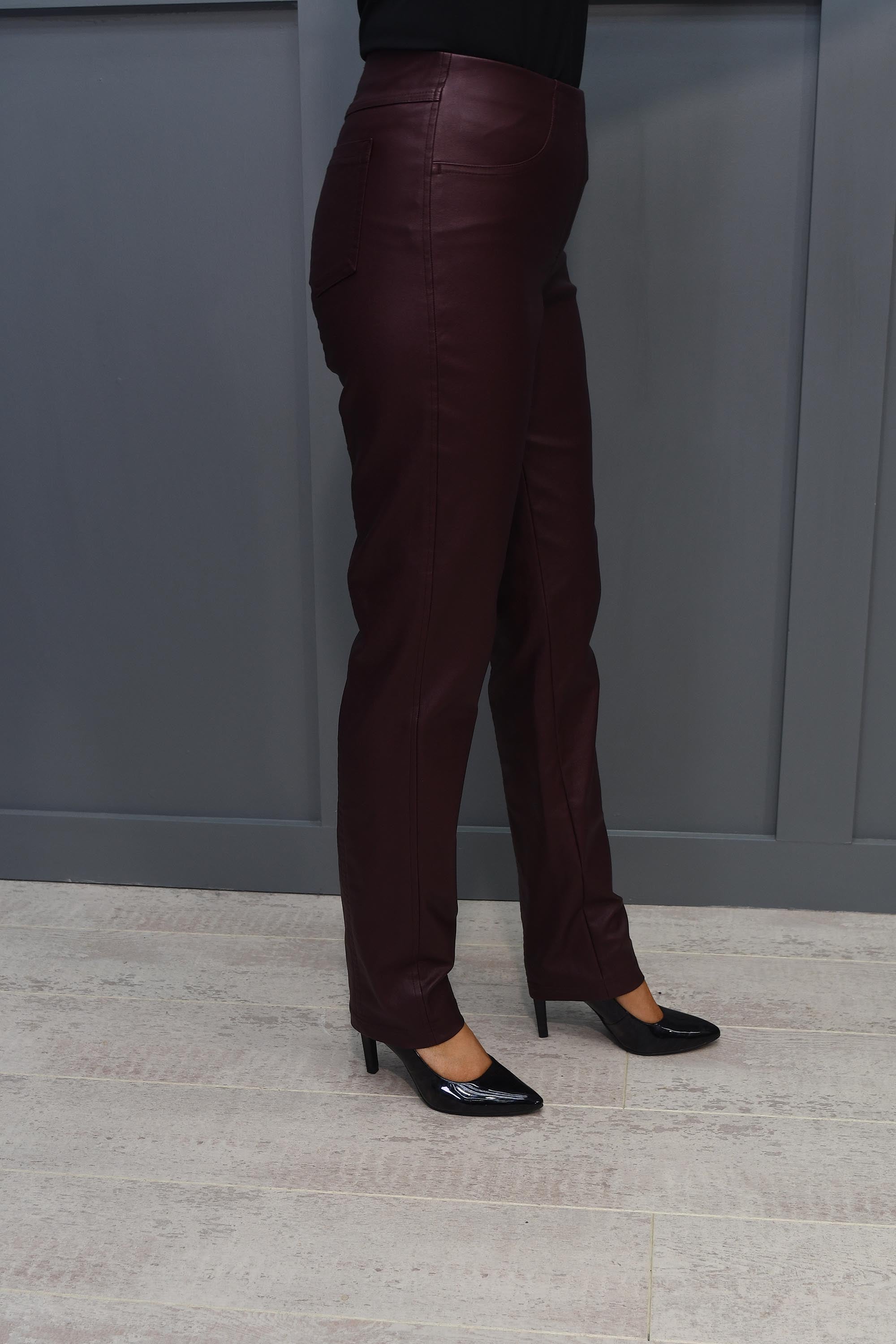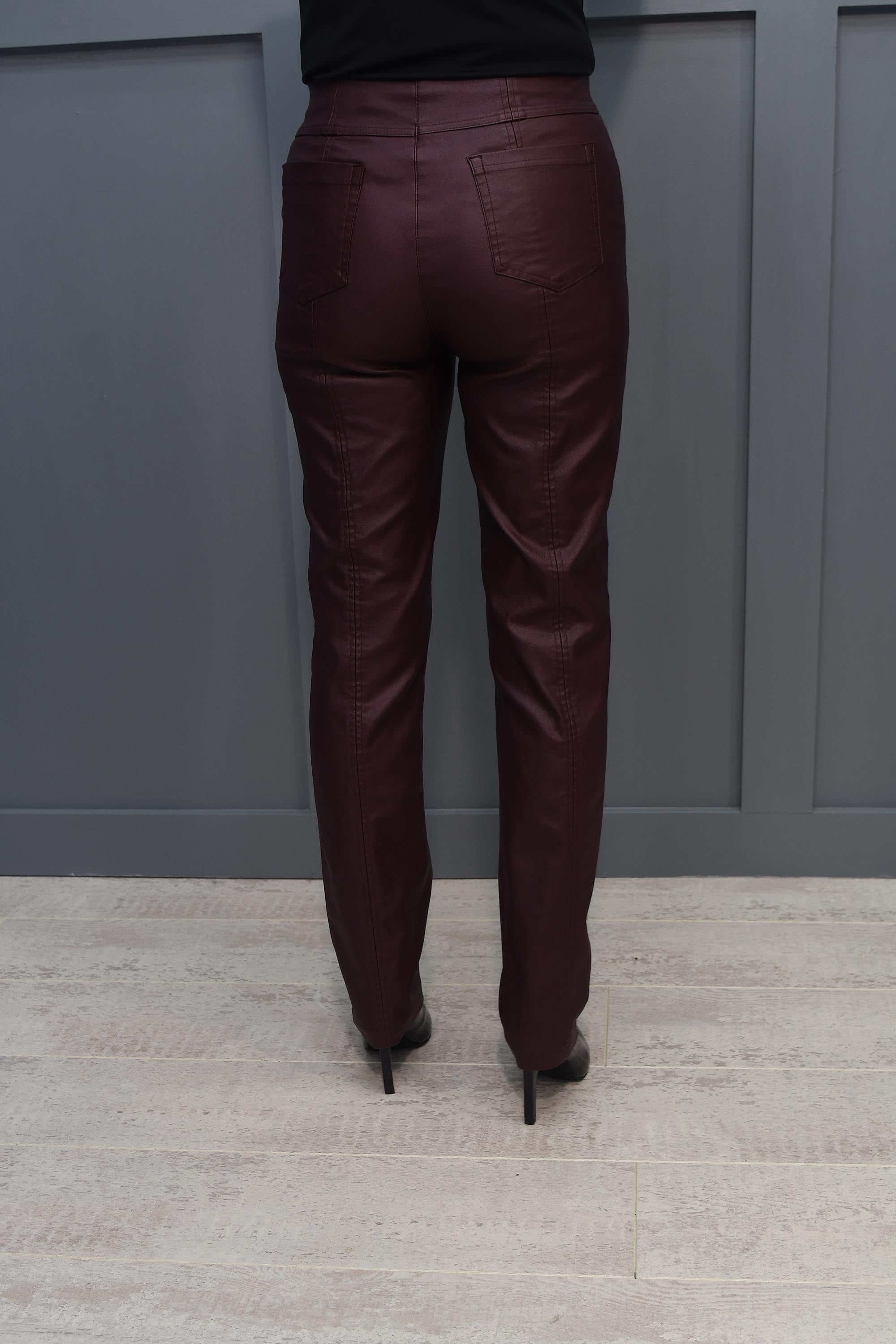 Robell Bella Faux Leather Full Length Trousers - Plum 51559 54344 58