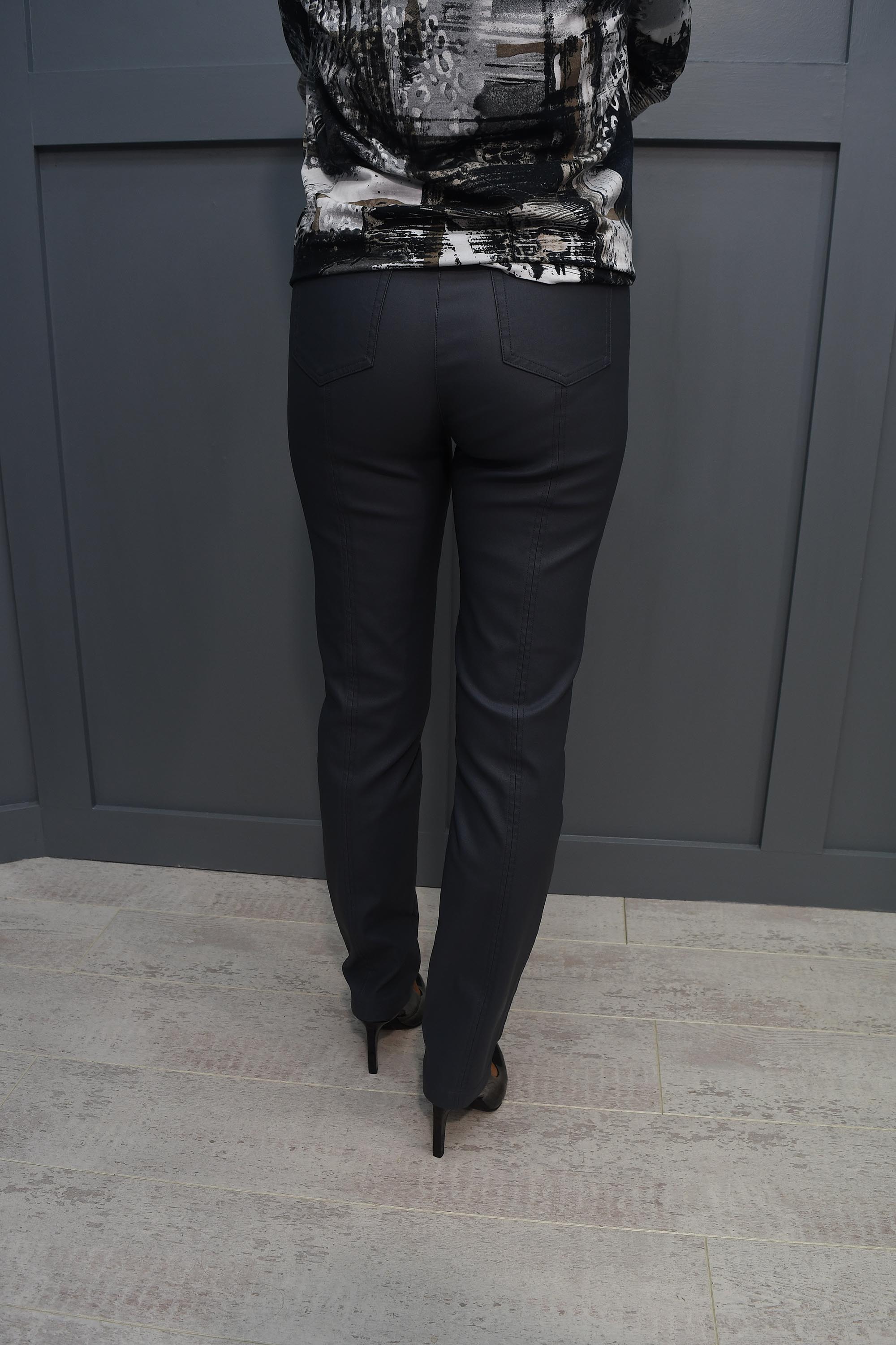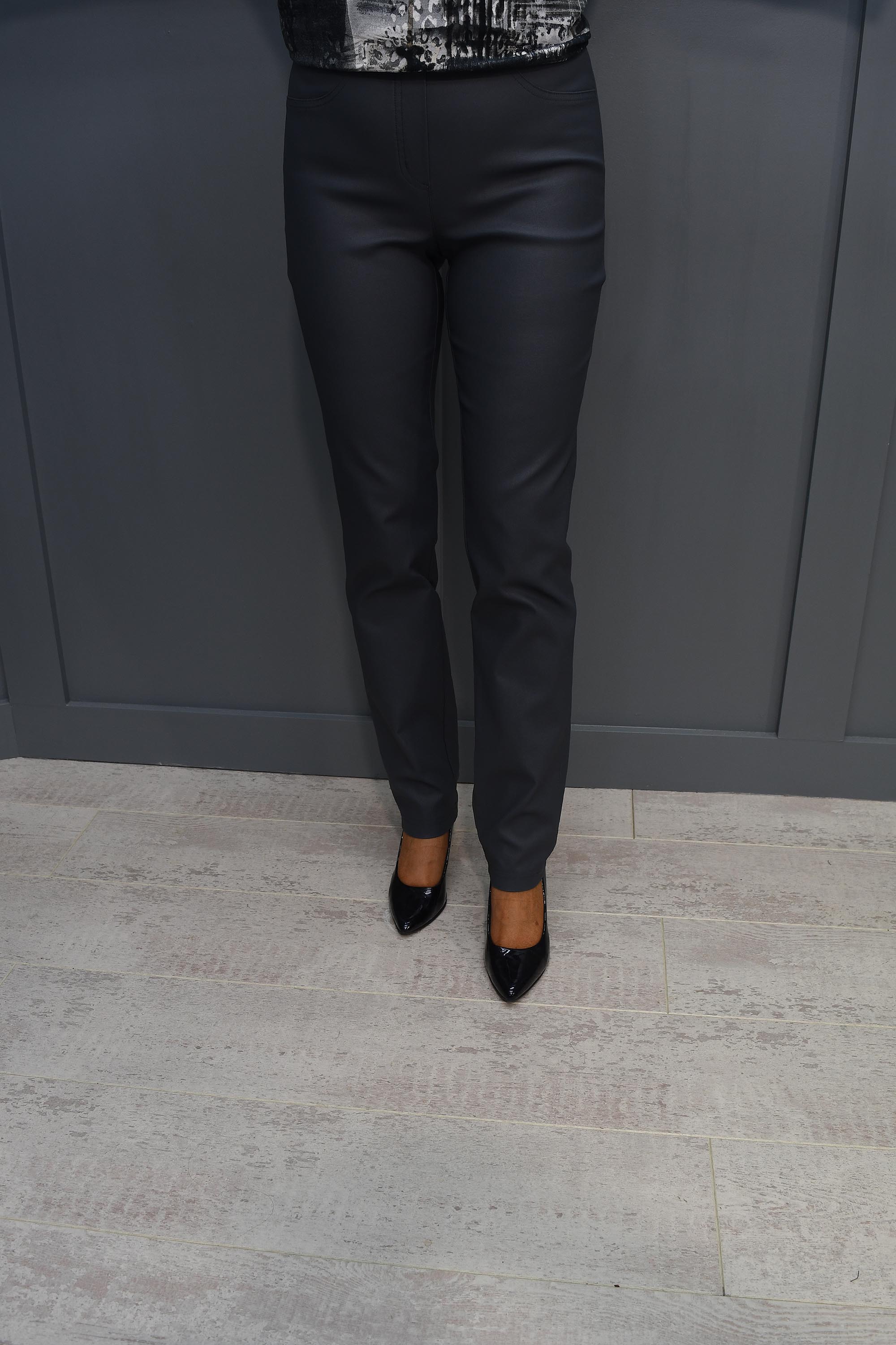 Robell Bella Steel Faux Leather Full Length Trousers - Grey 51559 54344 94