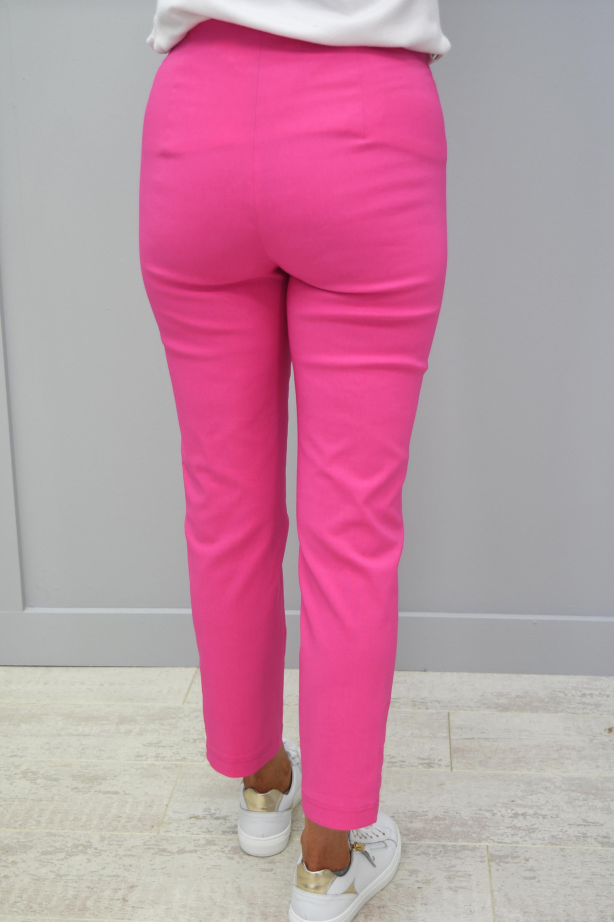 Looking for a trouser that’s both stylish and a comfortable fit…then our Robell Lena Cerise Candy Pink Trousers tick all the boxes. These trousers have an extremely comfortable pull on design and are perfect for your everyday wardrobe. The elasticated waistband will create the perfect shape for your figure and accentuate all your best areas. The waistband is neat, with no zips or buttons, which make these Robell Lena trousers your new go-to item. With a gorgeous 7/8th length, these trousers will finish at just the perfect length helping you to look and feel your best. The Lena Trouser comes with a subtle extra design down the side of the leg with a cut-out down each side at the bottom. Add that extra flare to your look with ease, and be ultra comfortable whilst doing it. Wear these beautiful Robell Lena Cerise Candy Pink Trousers with a pair of sandals during the day and perfect for dressing up in the evening with your favourite summer wedges.