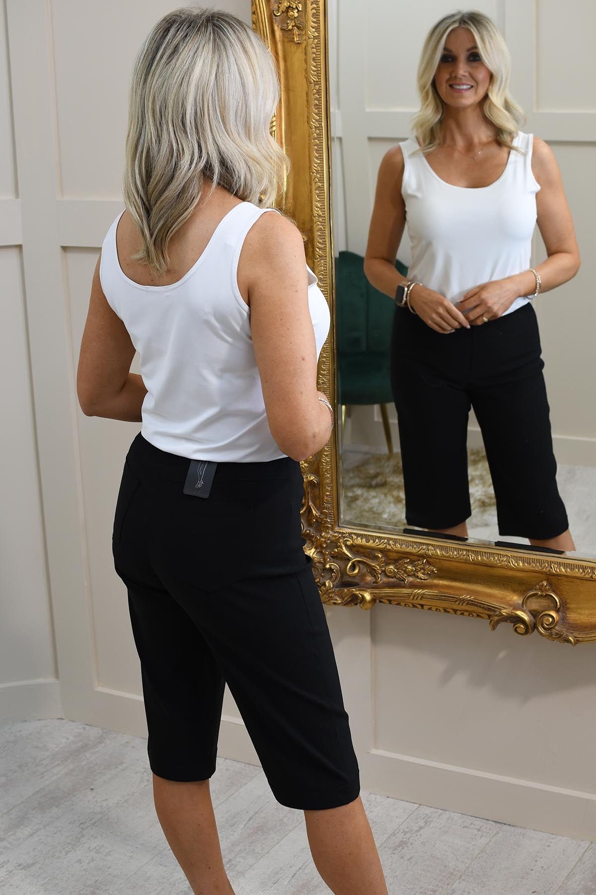 Step out in style this summer in our Robell Bella Black Shorts. These shorts are an essential item for your wardrobe this season...you don't want to miss out! The higher waist is comfortable to wear and would allow you to tuck in a little top to accentuate your waistline. Robell are the best at creating shorts with a relaxed fit...and these shorts prove just that! The length is perfect...falling just at the knee. Style with a pair of sandals or your favourite wedges and a bright top...and you're summer ready! If you're going on holiday and you want a pair of shorts you can wear day-to-day...then these tick all the boxes. Perfect for soaking up the rays in style and comfort.