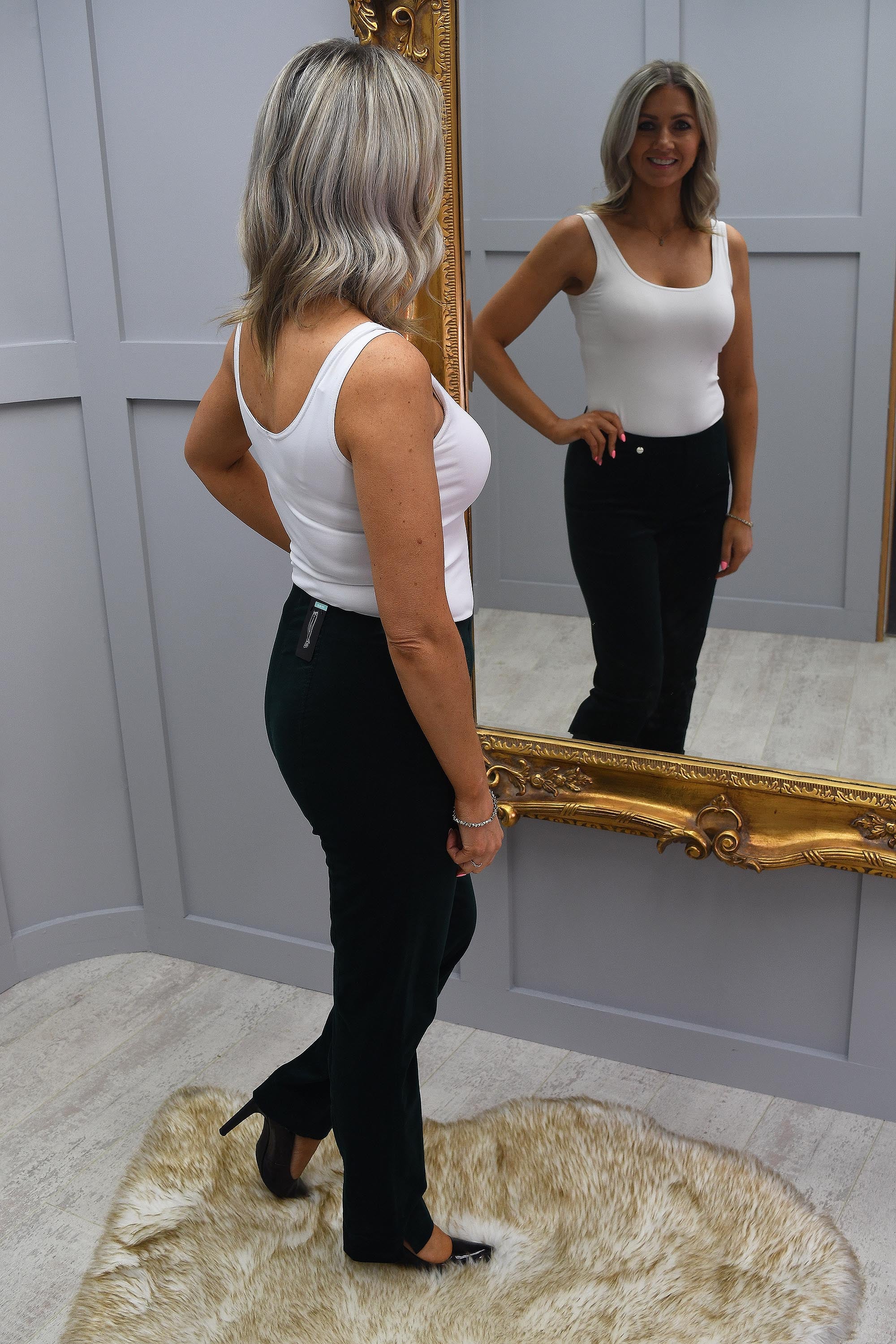 The Robell Marie Bottle Green Velvet Trousers are a definite cert for your wardrobe for the colder season ahead. With an incredibly comfy pull on design, these trousers are an extremely popular item with our customers for Autumn and Winter. A clever seam and a flat elasticated waistband allows these trousers to accentuate your shape. With a straight fit, full length leg and a small split at either side of the ankle, they are the perfect addition to any look you want to create. The Robell Marie Bottle Green Velvet Trouser have a little hint of stretch and they are made from a weightier velvet, perfect for women who want both luxury and warmth in the colder months ahead. The decorative Robell pendant attached to the waistband transform these Robell Marie Bottle Green Velvet Trouser from stylish to superior. High quality and stylish…everything you want in a trouser! Pair these Robell Marie Bottle Green Velvet Trousers with a simple white T-shirt for a look that is casual, yet chic. These gorgeous trousers are the epitome of luxury and are perfect for when you are looking to step out in effortless style.
