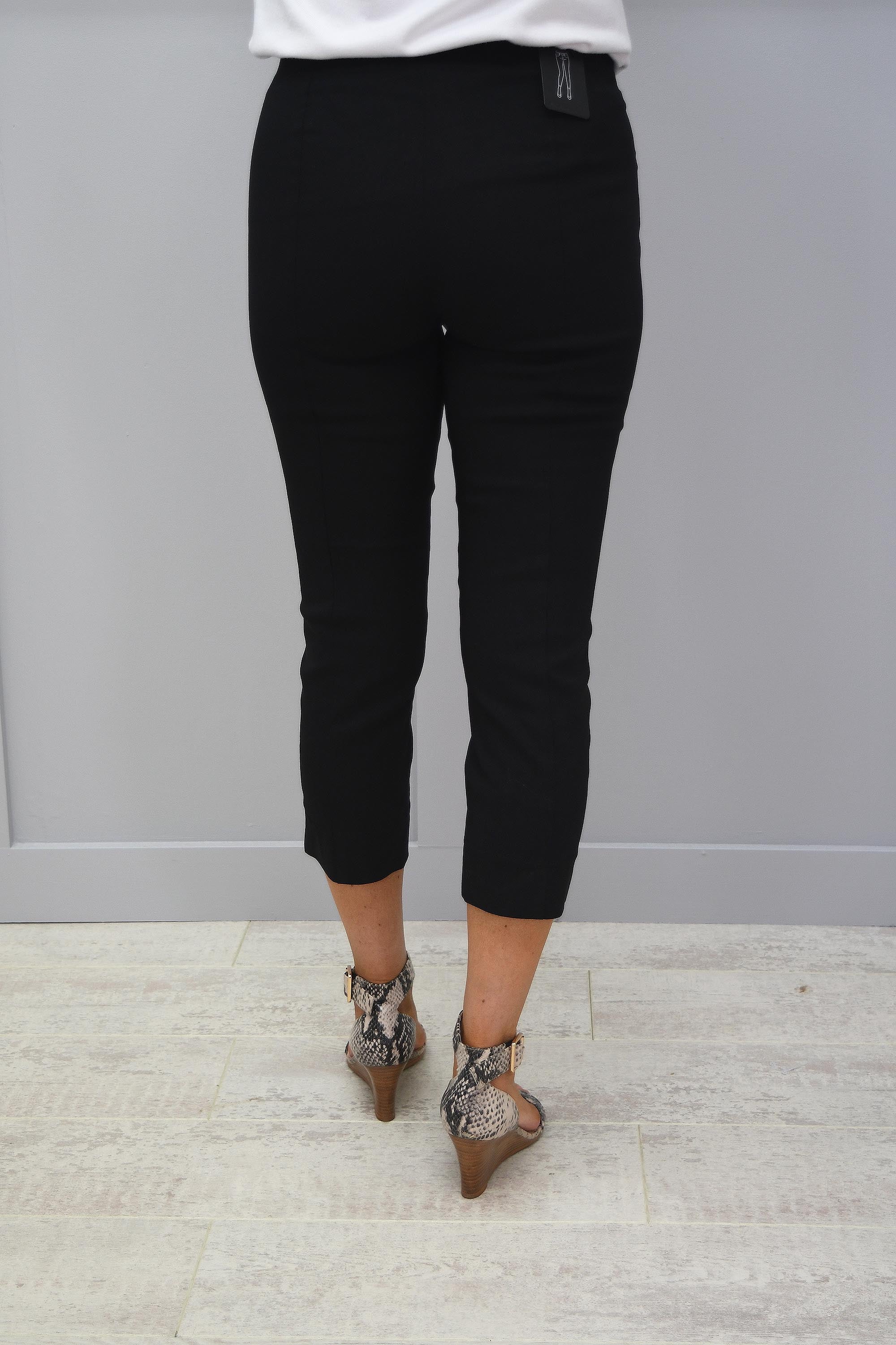 Be Summer ready in our Slim fitting Cropped trouser with our Robell Rose 07 Cropped Trousers Black 90. With an incredibly comfortable pull on design with a flat elasticated waistband and a clever seam, allowing you to achieve your perfect shape and accentuate your waistline. The stretchy material still allows for a fitted look and a super slim fit gives you a slimmer leg and an amazing all round shape. Holidays Aboard? Long Summer Days? Look and feel your best this season in Robell Rose 07 Cropped Trousers Black 90 it is the perfect addition to every wardrobe!