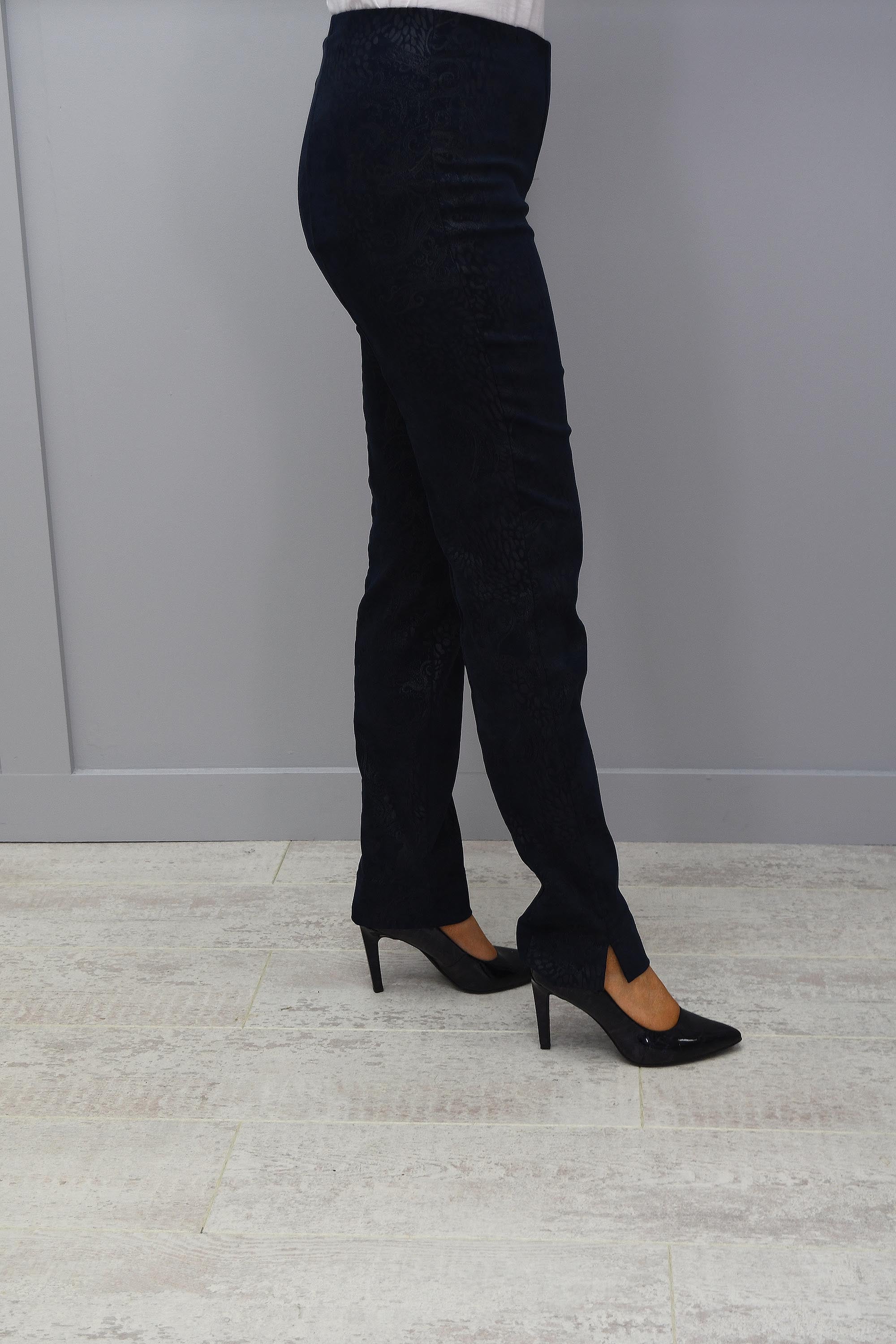 Robell Marie Self Pattern Suedette Trouser - Navy 51412 54669 69