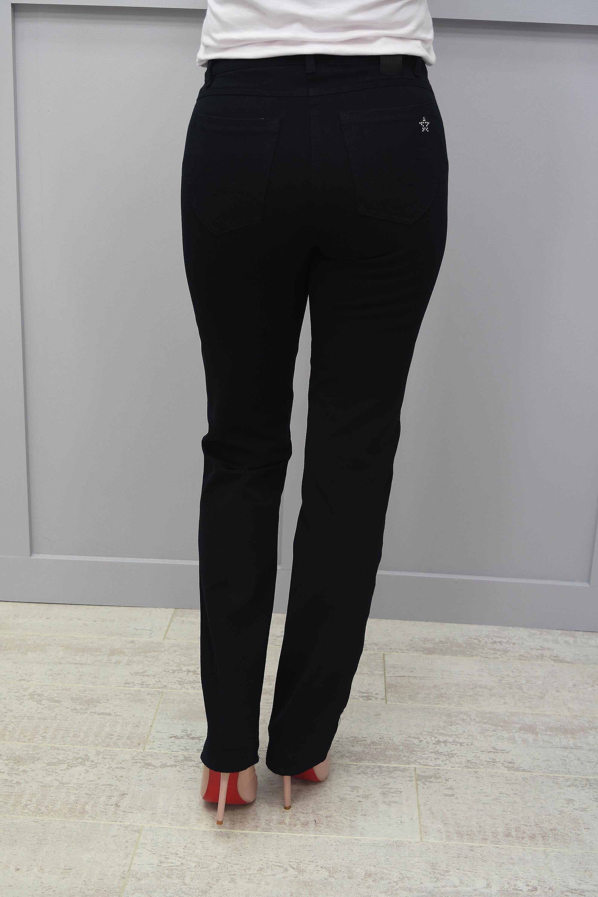 We just know these smart, stylish, comfortable Sonja Black Jeans from Robell are going to be your favourite new wardrobe staple this summer! These are the perfect pair of jeans, and you’ll be reaching for them again and again as they’re a fantastic outfit choice for every occasion. The high waistline makes these jeans perfect for tucking a top or shirt into, a little trick that really flatters your waistline and is so fashionable. The modern boot leg fit is stylish, and makes these jeans perfect for wearing with heels. Black can be paired with any colour, lending these jeans to so many pairings, so you’ll never run out of outfit combinations! Featuring five pockets and belt hoops, these jeans are fantastically functional, but our favourite feature is the stunning silver star added to the back pocket in delicate studs! Pair with a white top and nude heels to look like you’ve stepped straight out of a fashion magazine, or dress down with sneakers for a contemporary casual look.