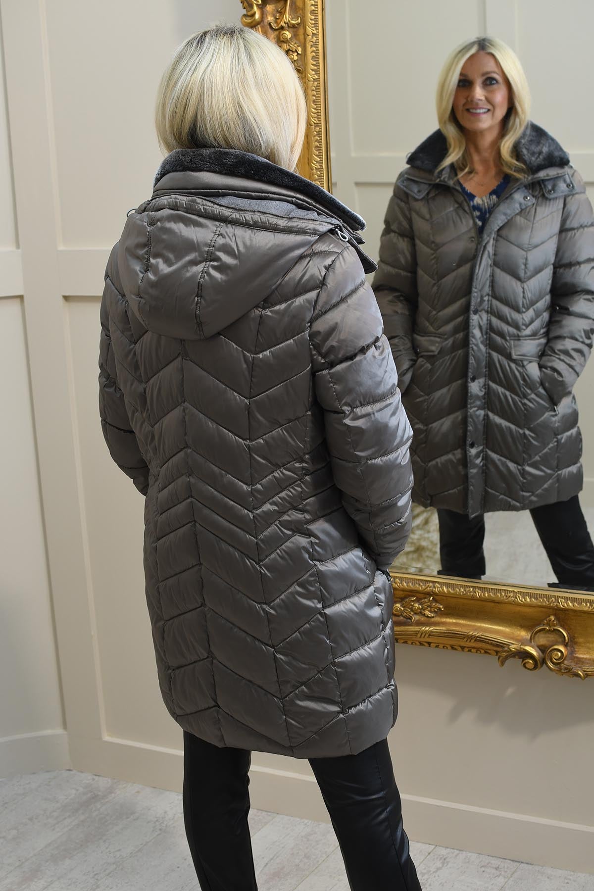Barbara Lebek Taupe Padded Coat With Detachable Hood Description