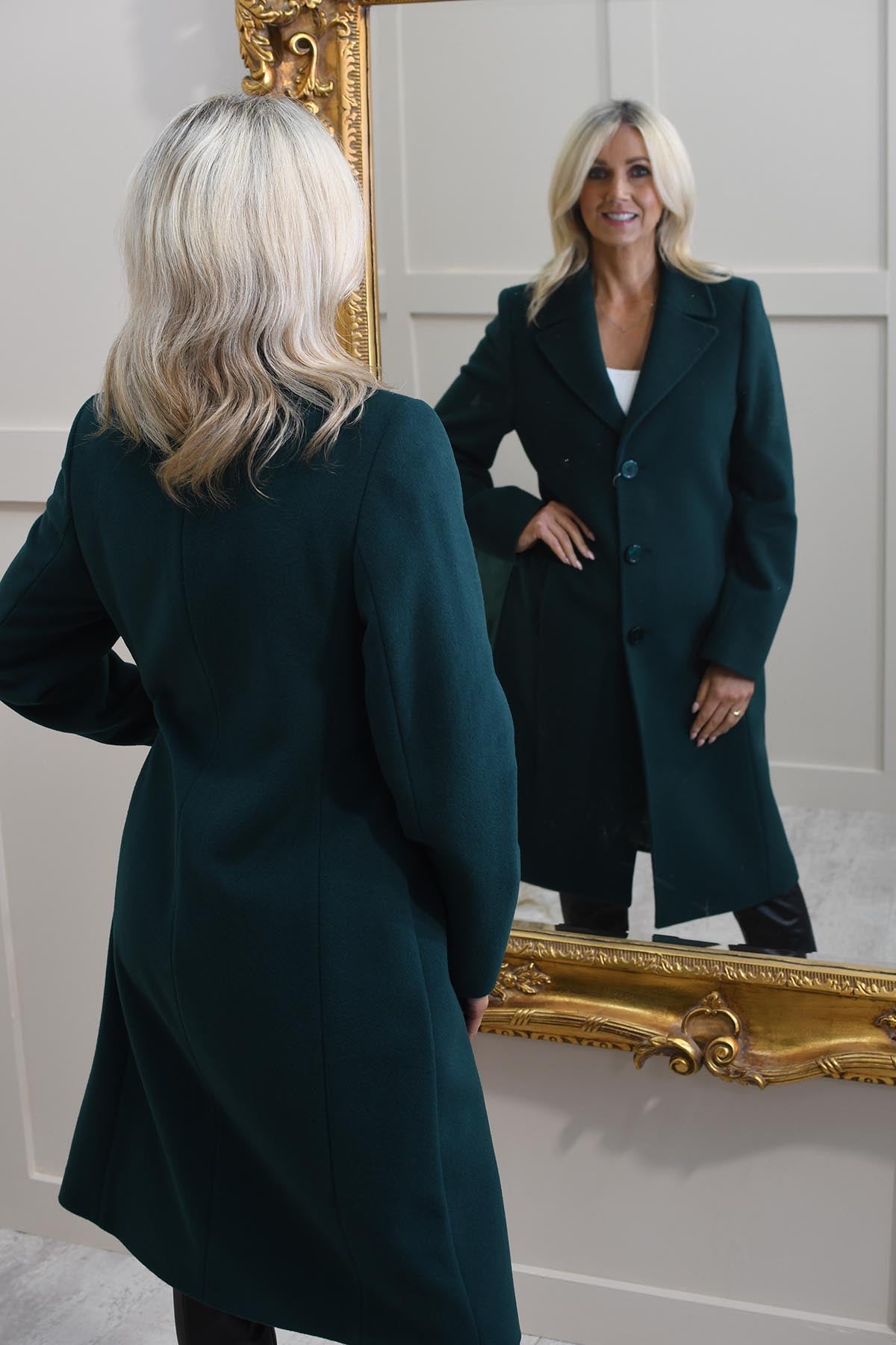 Elevate your outerwear collection with the Christina Felix Bottle Green Duster Coat, a sophisticated and versatile piece that embodies timeless elegance. This duster coat, rendered in a stunning green hue, is designed to effortlessly complement any outfit, offering a refined and polished look for any occasion.