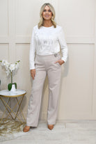 Refine your wardrobe with the Barbara Lebek Straight Leg Trousers in versatile sand, finished with a chic buckle detail. Crafted from 70% viscose, 25% polyamide, and 5% elastane, they offer a soft feel with durability and stretch for comfort and ease of movement. The straight leg cut creates a timeless silhouette, while the buckle adds a touch of modern polish. Perfect for pairing with blouses, knitwear, or jackets, these trousers transition effortlessly from office wear to smart-casual occasions. A wardrobe essential, they blend comfort, quality, and elegance—ideal for women who value classic tailoring with contemporary detail.