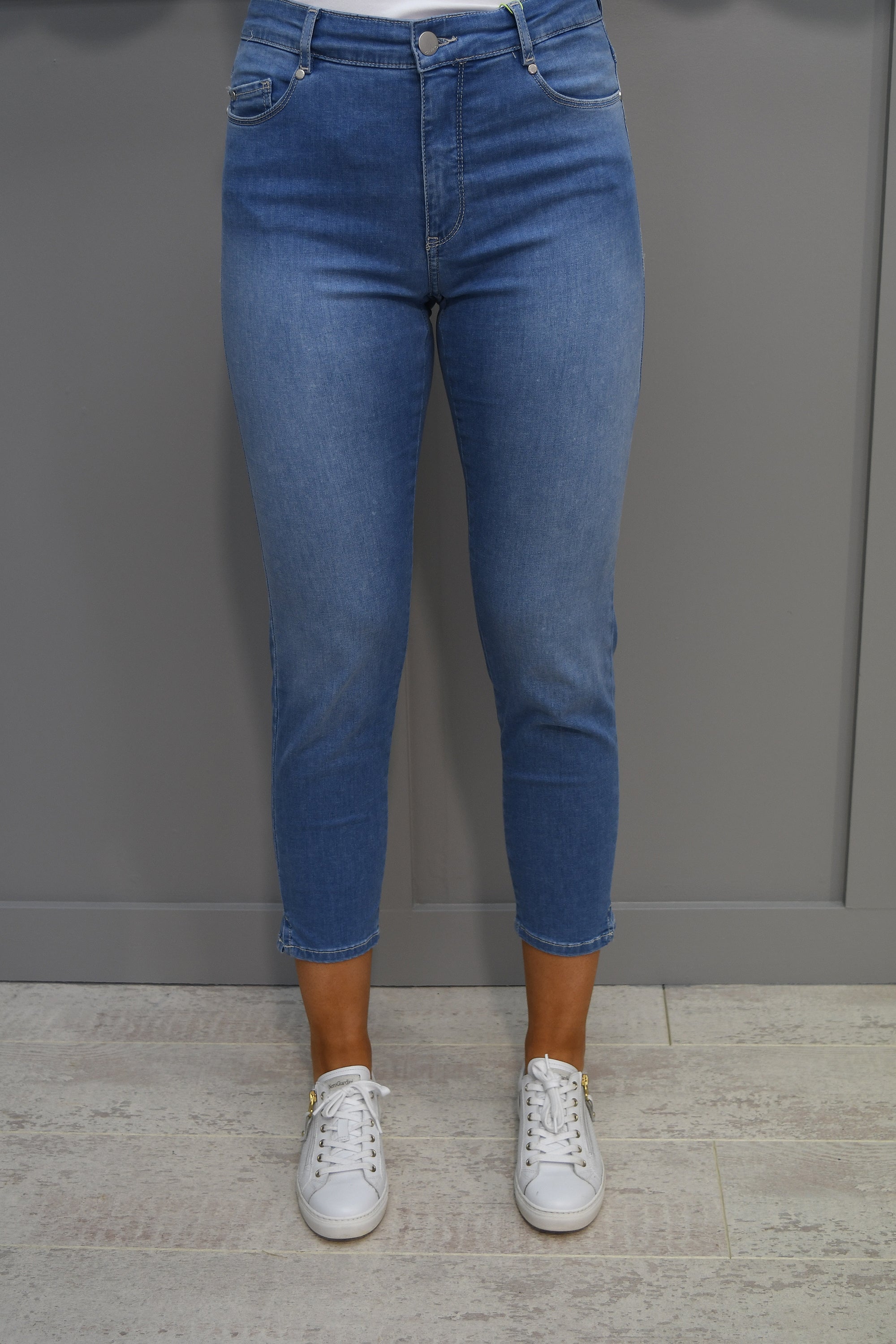These versatile jeans from CRO are truly magic! The Magic Fit Skinny Crops Blue 7/8 Length are designed with a figure-flattering high waistline, dual button and zip-up front, five pockets and straight legs which crop just below the knee. These classic blue denim jeans are incredibly comfortable and are the perfect casual pant for summer.