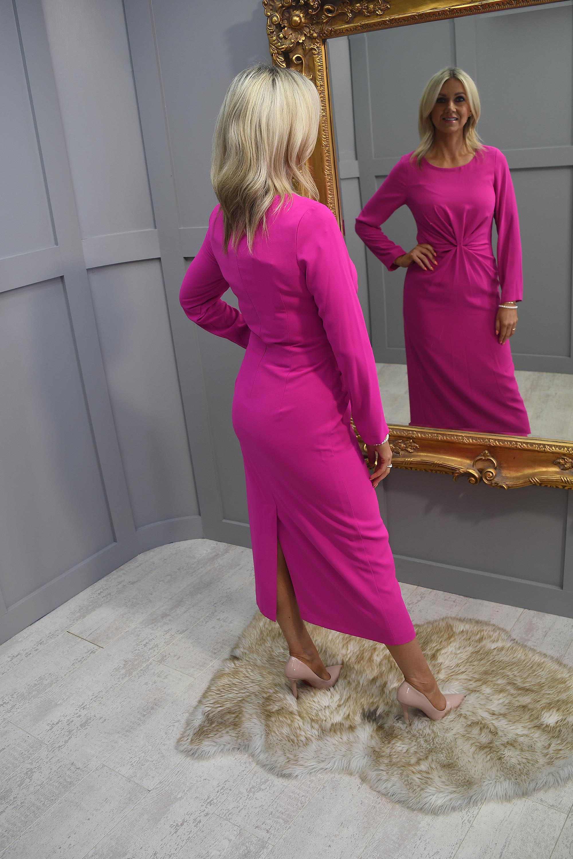 Ella Boo Hot Pink Long Sleeve Dress With Gathered Waist Detail Description