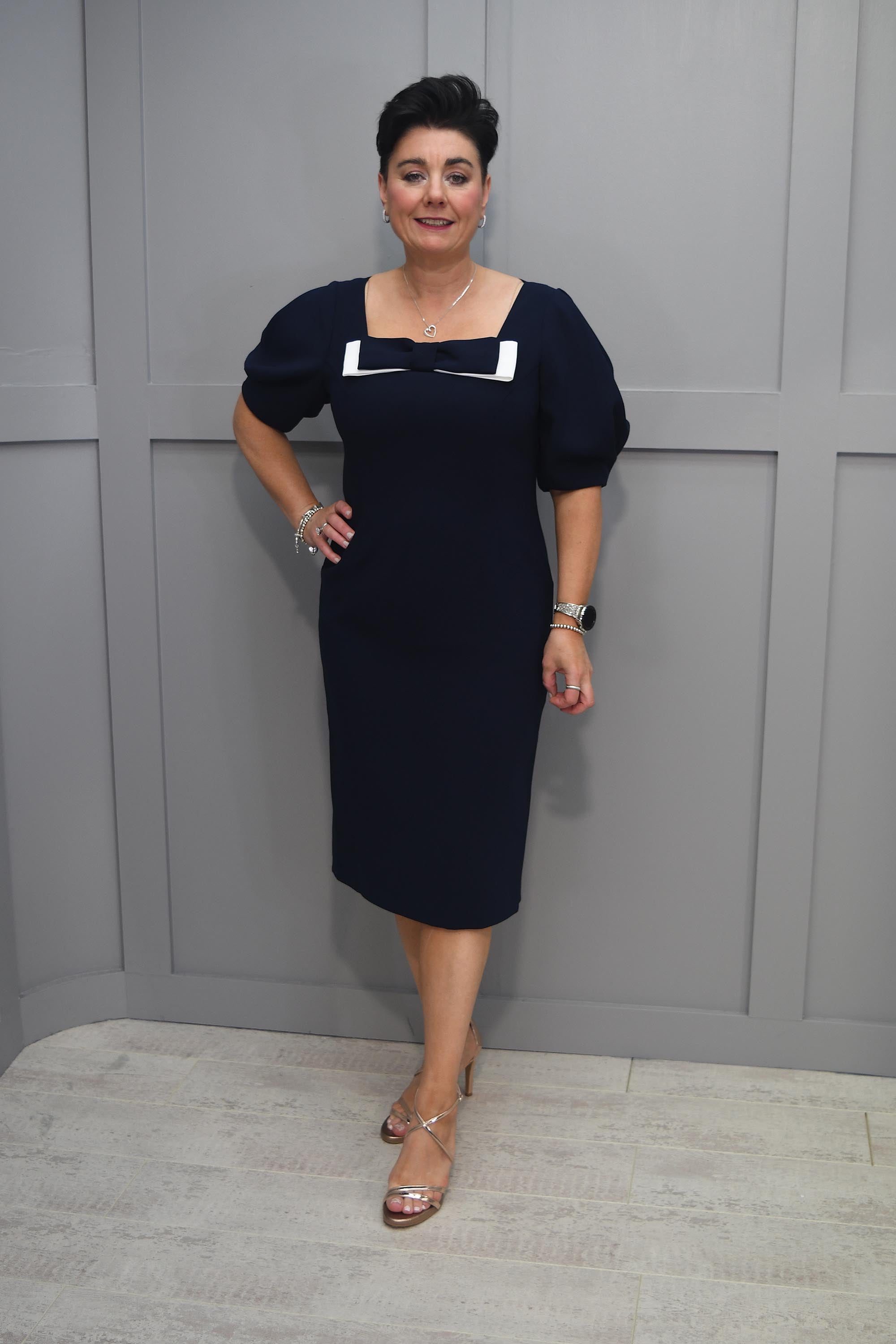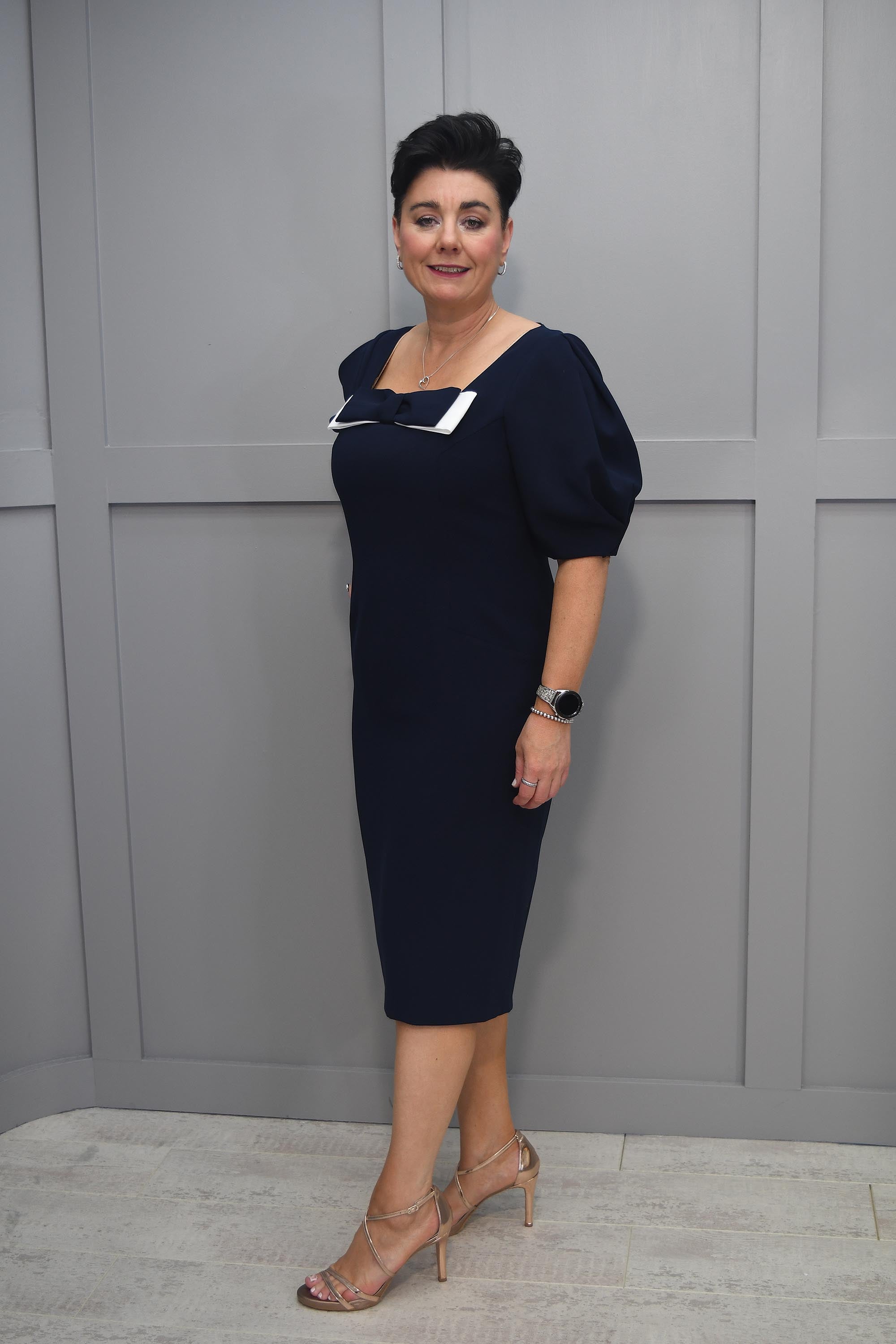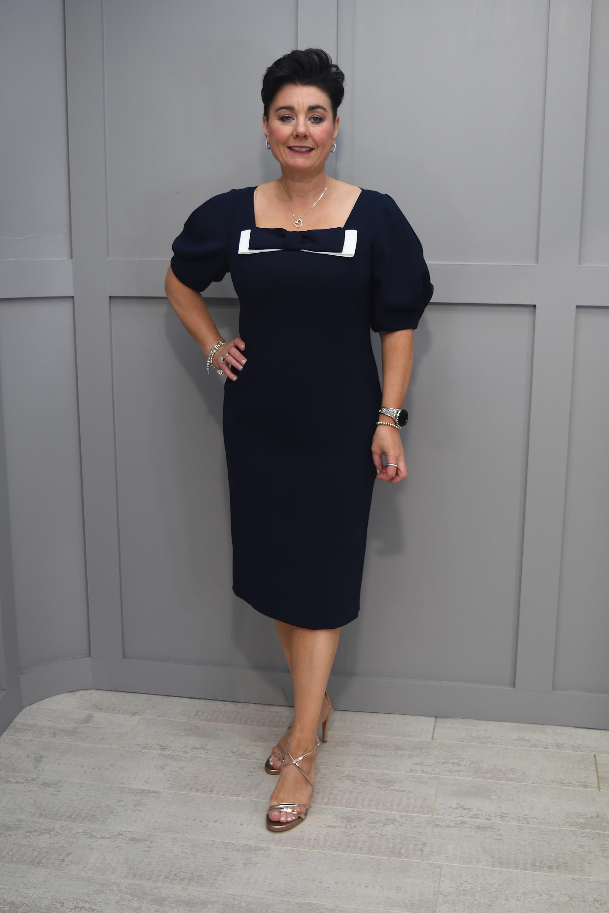Ella Boo Navy Dress With White Bow & Puff Sleeve Detail - 2236 40