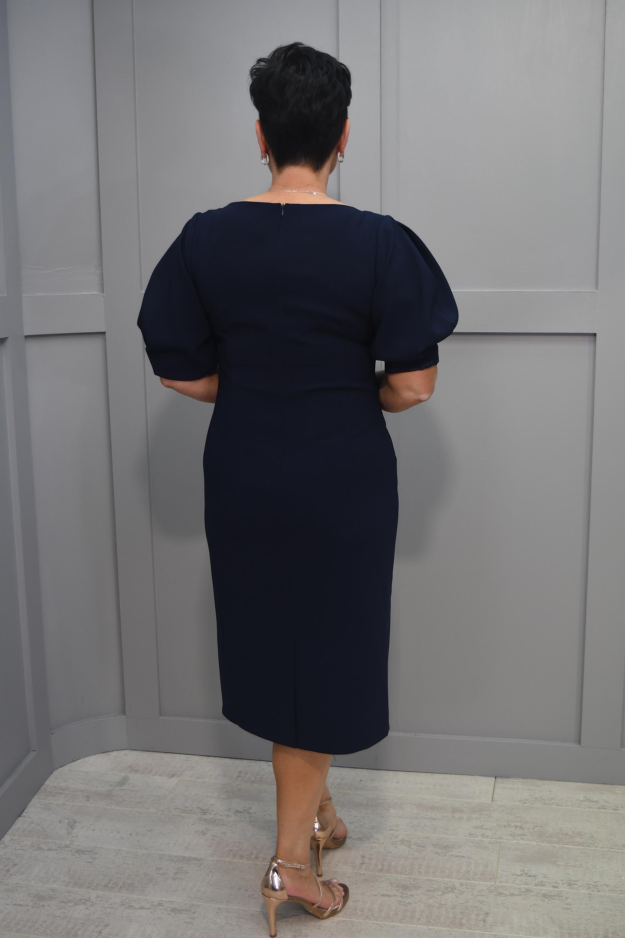 The dress is designed with a high-quality fabric that is both soft and comfortable, making it ideal for all-day wear. The navy colour is classic and can be easily paired with a variety of accessories and shoes, making it suitable for a range of occasions.