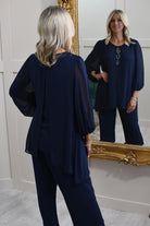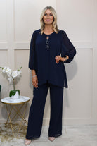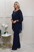 Elevate your formal wardrobe with the Lizabella Navy Two Piece With Diamante Keyhole Detail, the perfect ensemble for the mother of the bride or groom. Crafted from 100% polyester, this elegant two-piece set offers a flowy silhouette that ensures all-day comfort without sacrificing sophistication. The standout diamante keyhole detail adds a touch of glamour, while the rich navy hue exudes timeless charm. Designed for special occasions, this outfit delivers a flattering fit and effortless grace. Ideal for weddings, formal events, or receptions, it's a luxurious blend of comfort, style, and confidence. A must-have for refined formalwear.