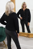 Marble Black Chunky Knit Short Cardigan- 7642 101