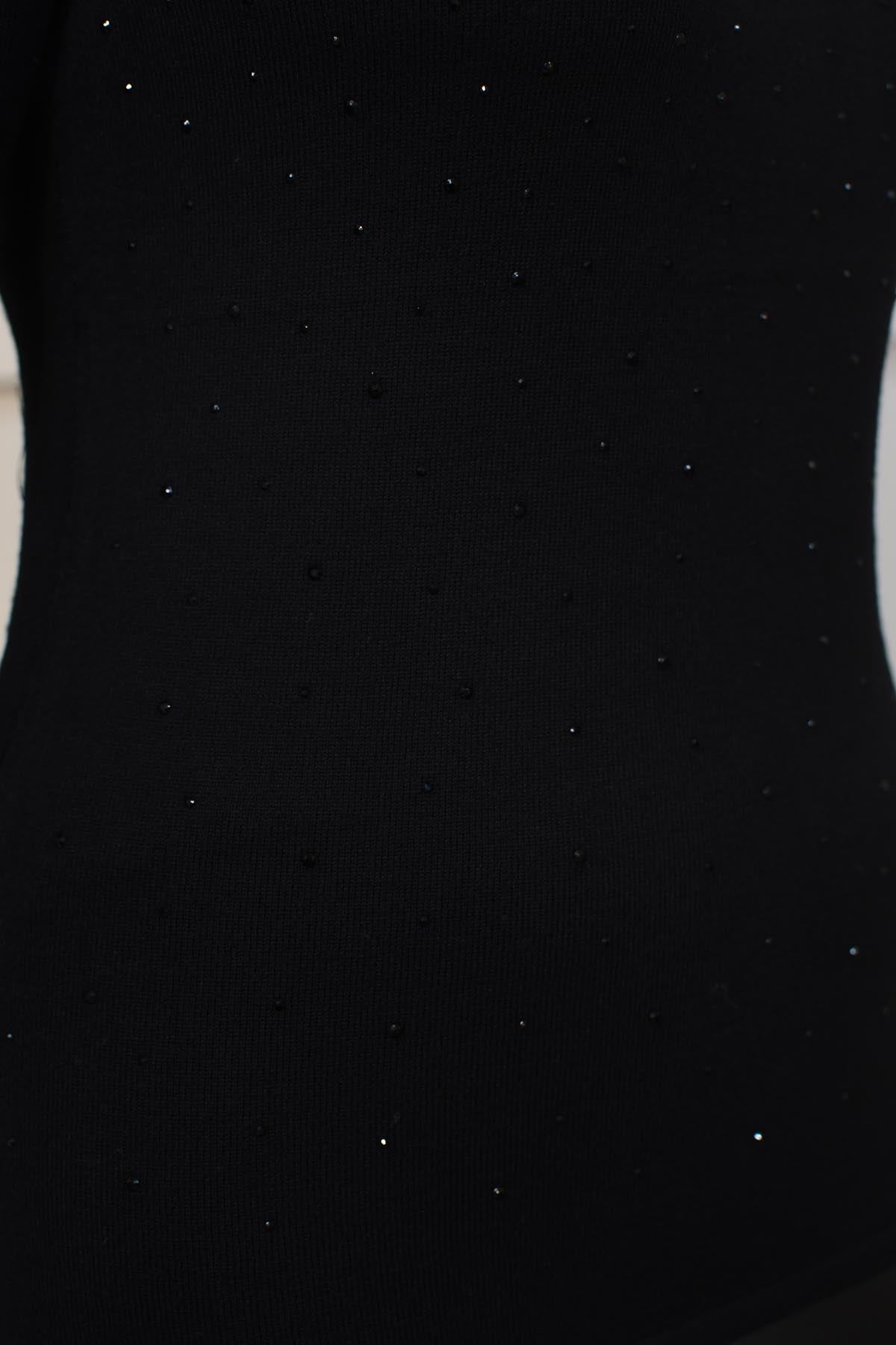 Marble Black Soft V Neck Sweater With Diamante Detail- 7119 101