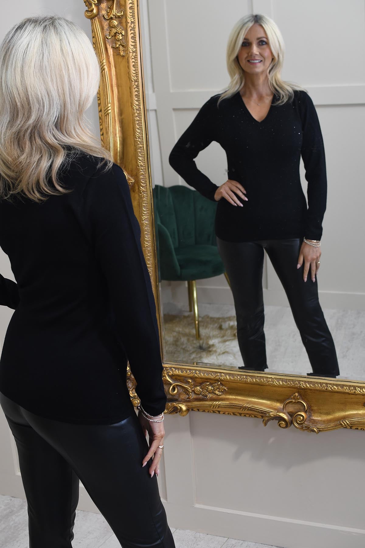 Our Model Rhonda wears size 10 & is 5ft 6”.