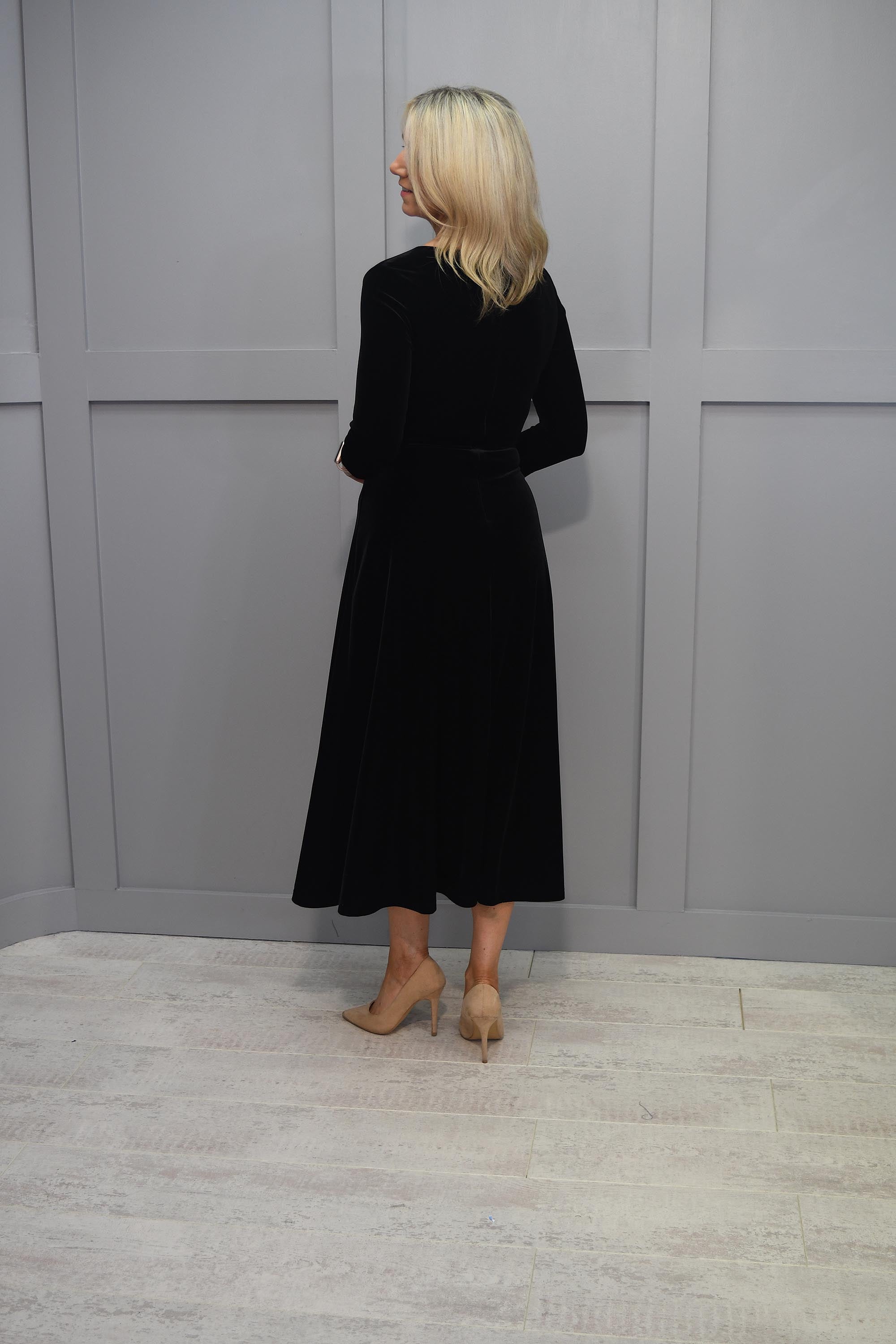 Tia Black Velvet V Neck Dress With Diamante Waist Detail Description