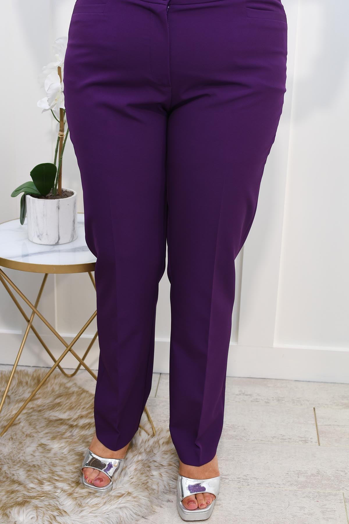 Step into elegance with the Via Veneto Deep Violet Trousers, a sophisticated addition to your wardrobe that exudes style and grace. These trousers, rendered in a rich deep violet hue, offer a bold yet refined look, perfect for both professional and casual settings.