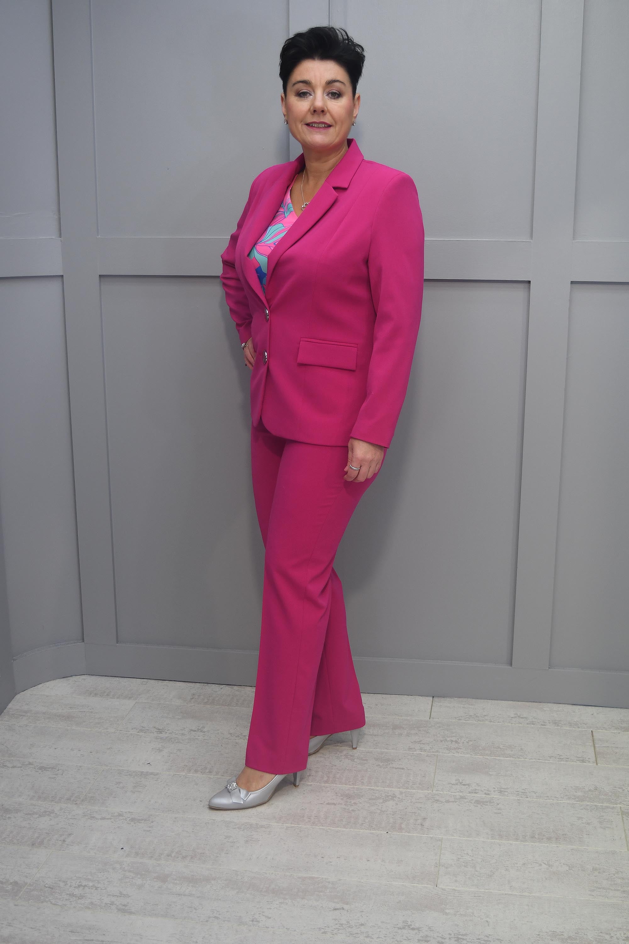 This is a beautifully designed and eye-catching women's blazer that is sure to turn heads. Its bold fuchsia pink colour and classic design make it a standout piece that is perfect for adding a touch of personality to any outfit.