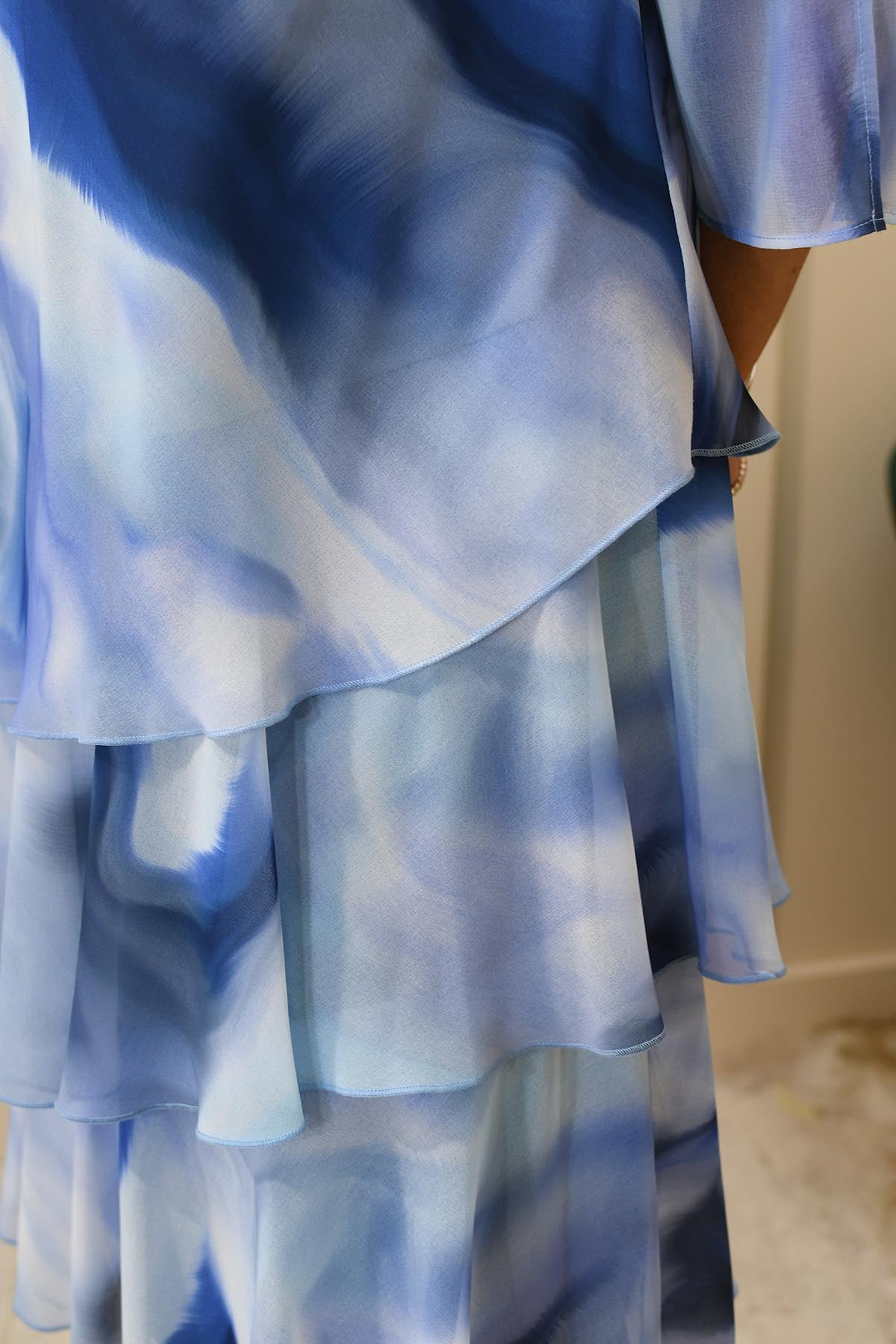 Godske Multi-Tonal Blue Cowl Neck Tiered Midi Dress- 18695 1129 61