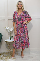 Make a bold statement with the Kyla mixed berry animal print plissé dress, a vibrant fusion of colour, texture, and effortless elegance. Crafted from a comfortable blend of 95% polyester and 5% elastane, this dress offers a flattering, flexible fit that moves with you. The striking animal print in rich berry tones brings a contemporary twist to a classic silhouette, while the pleated plissé fabric adds a touch of texture and sophistication. Lightweight and easy to wear, it’s perfect for both daytime events and evening occasions. A go-to dress for standout style with minimal effort.