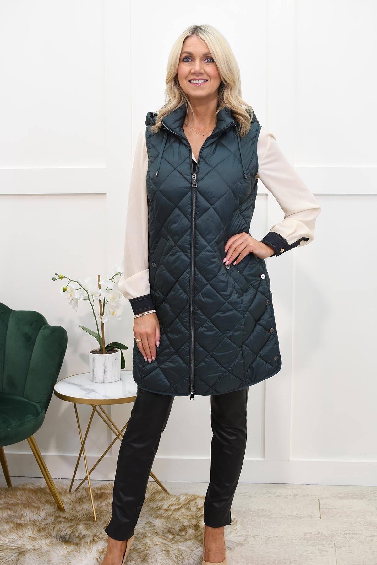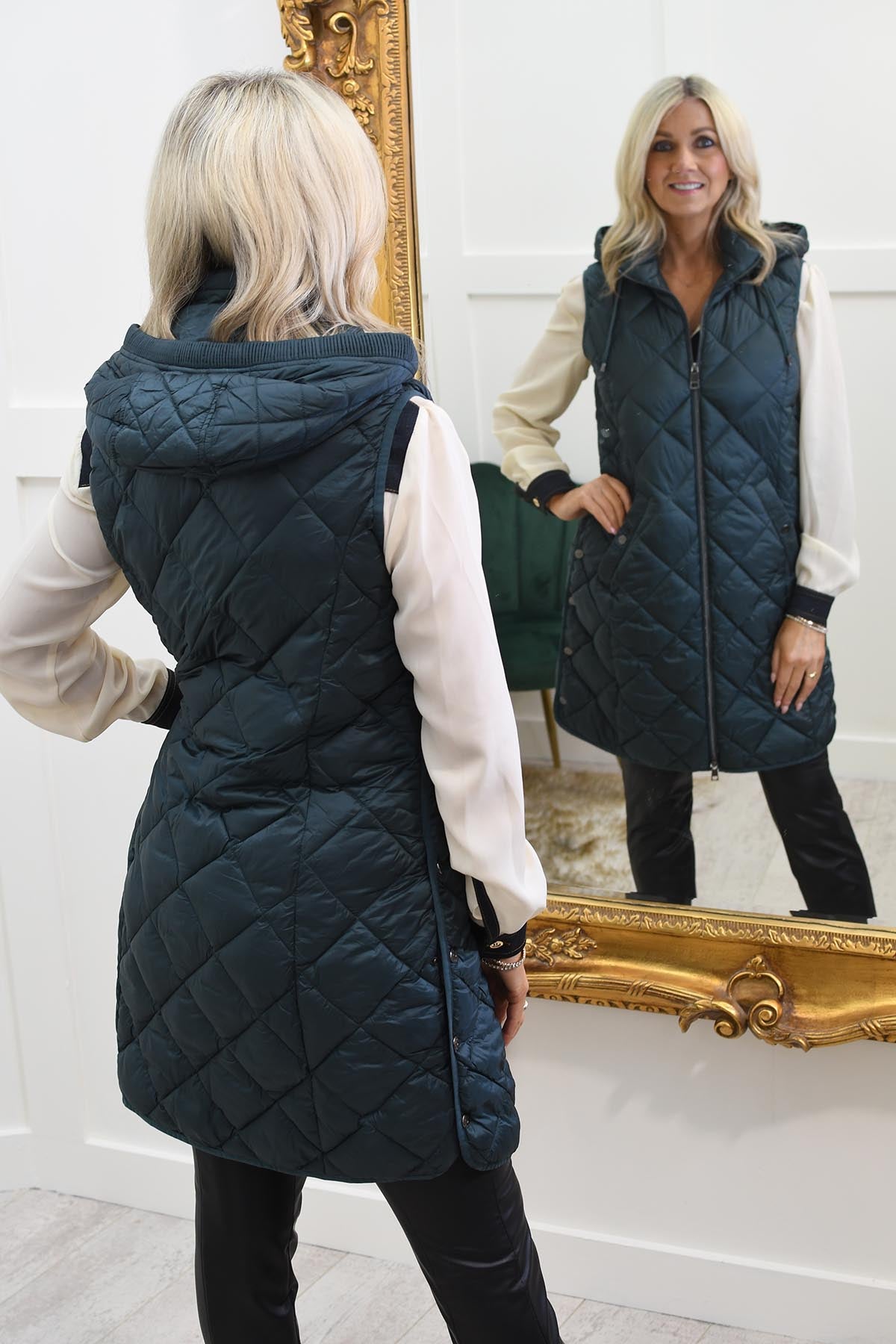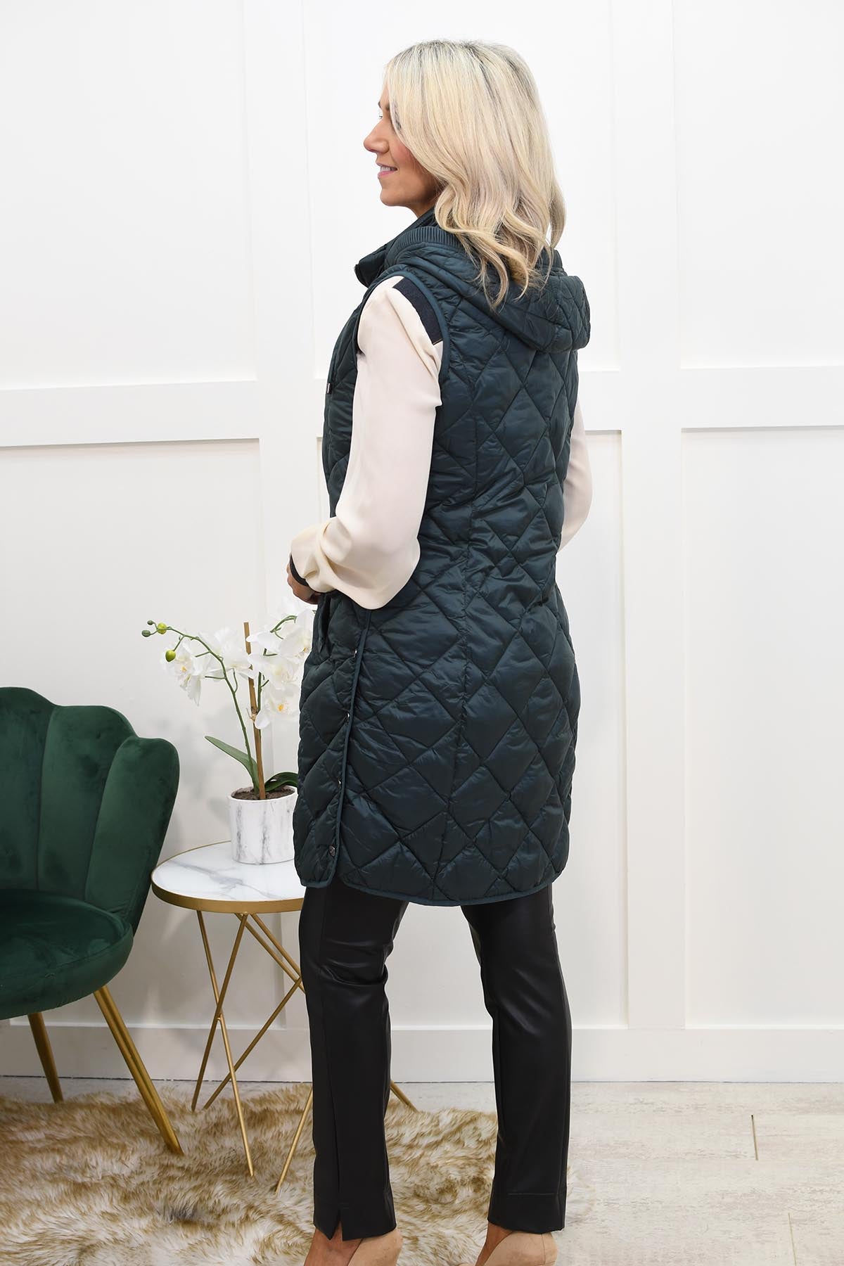 Barbara Lebek Bottle Green Quilted Gilet With Hood Description
