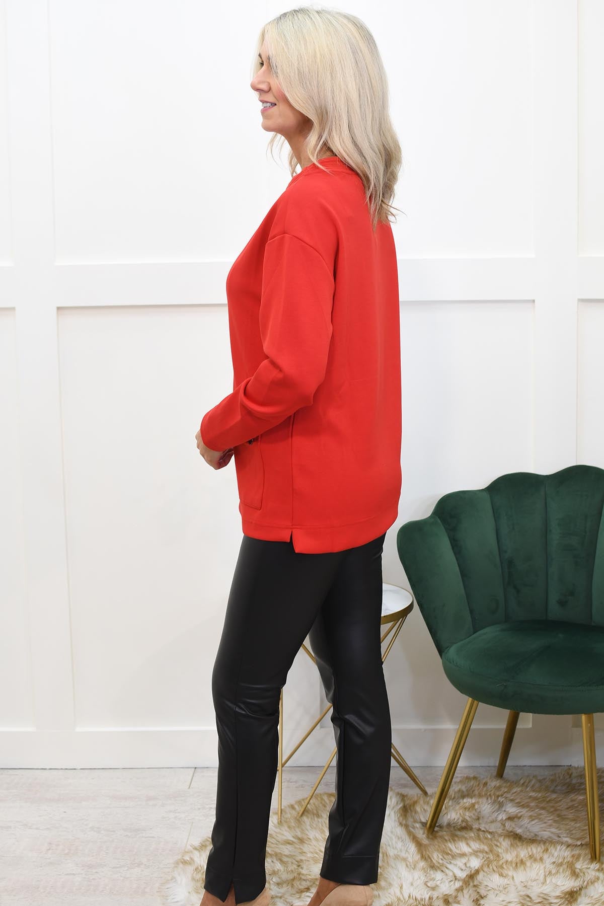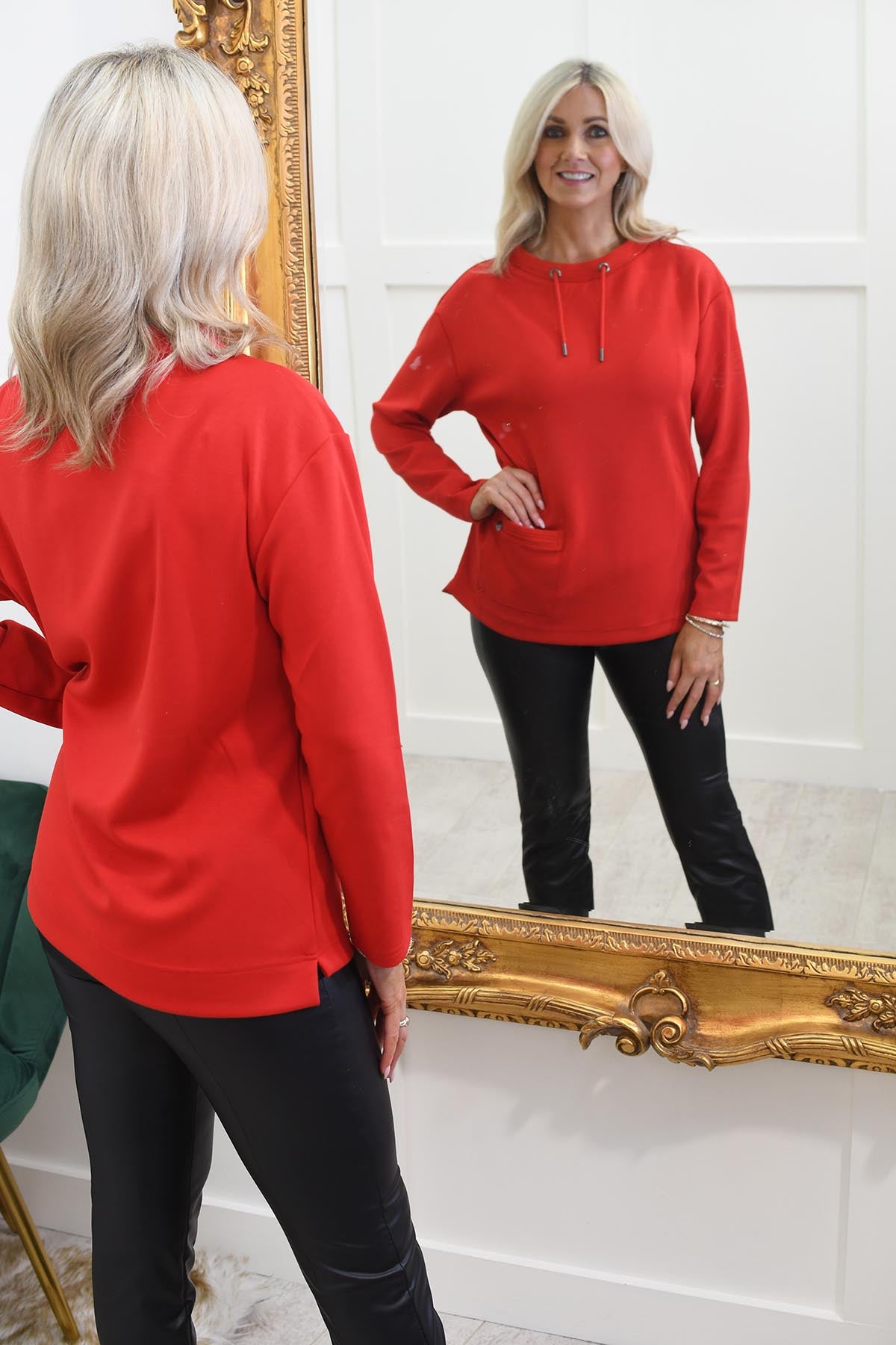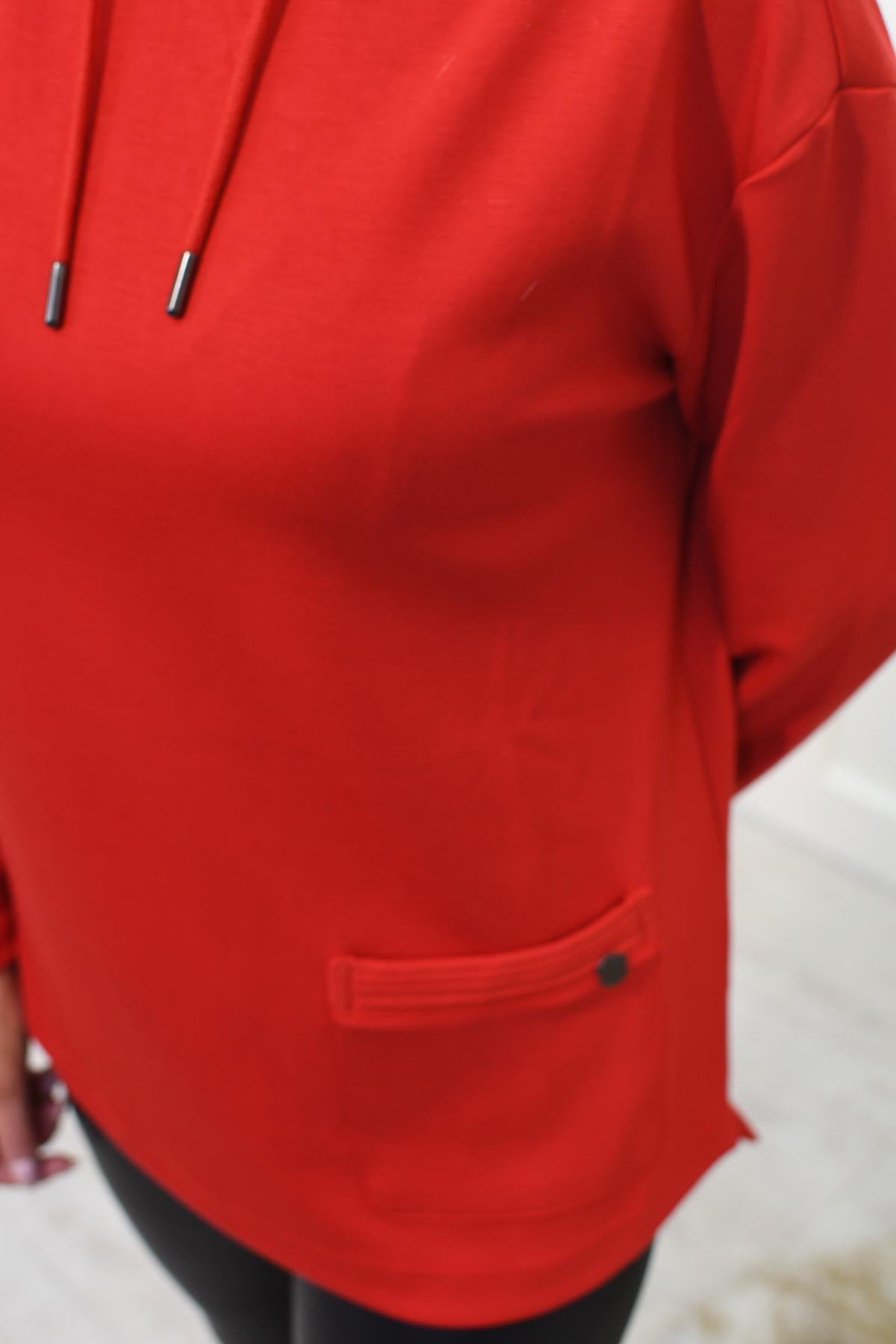 Barbara Lebek Ruby Red Sweater With Drawstrings & Pocket- 15570042