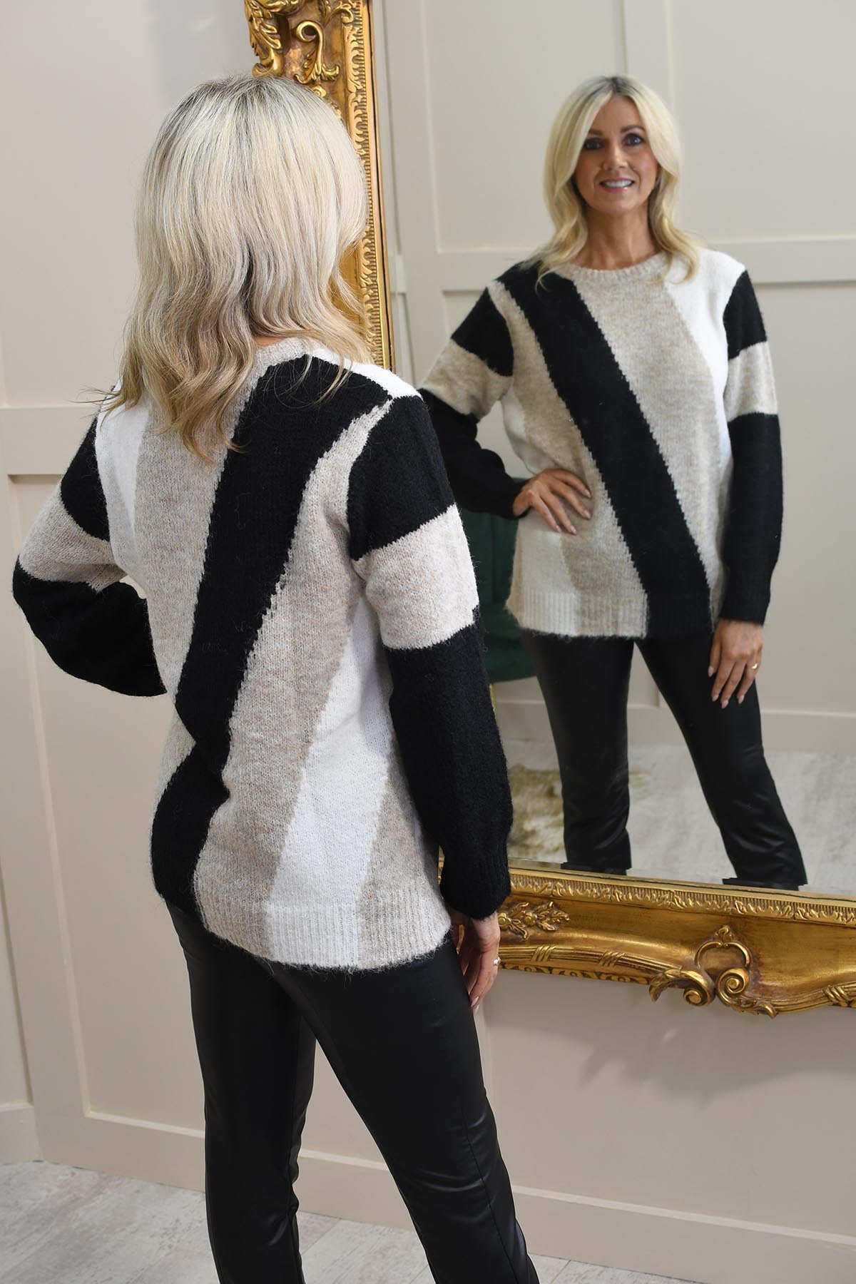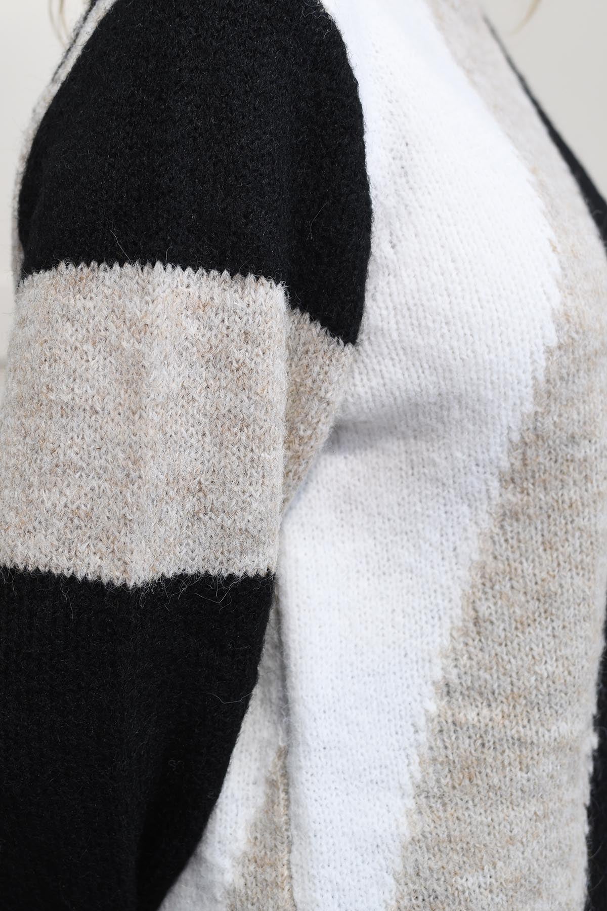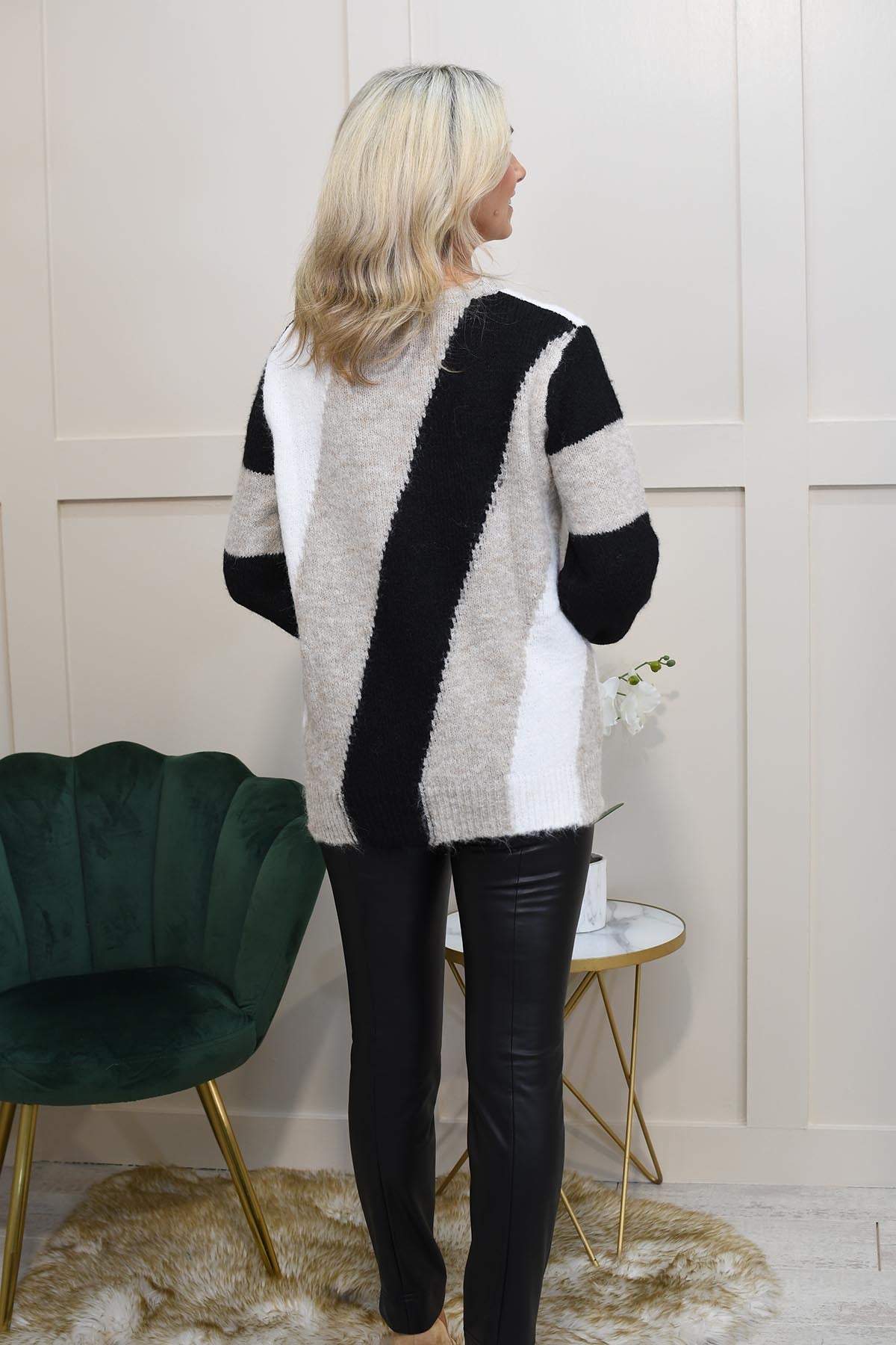I.nco Black, Beige & White Intarsia Jumper With Frayed Detail-IN7004-00