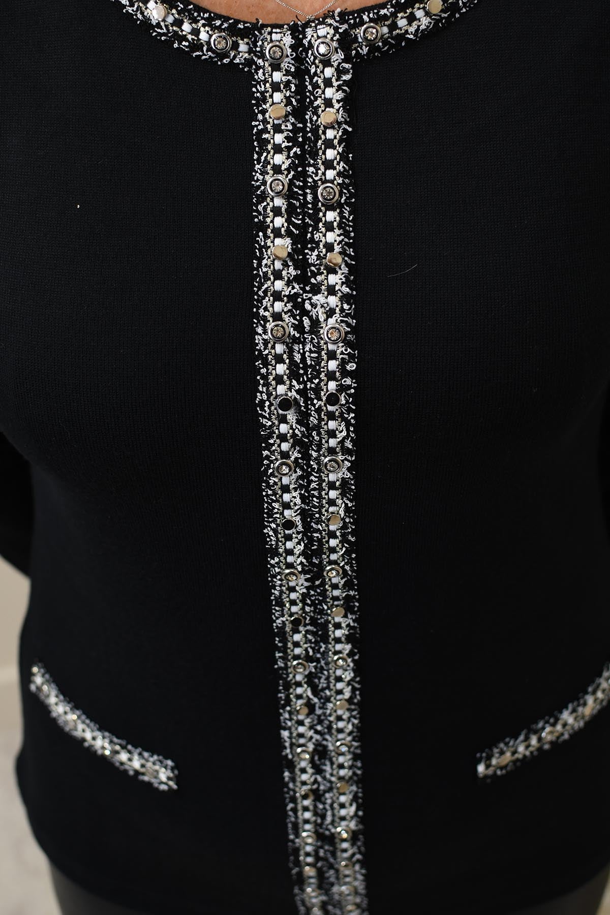 Libra Black Sweater With Monochrome Tweed Detail-LK1857