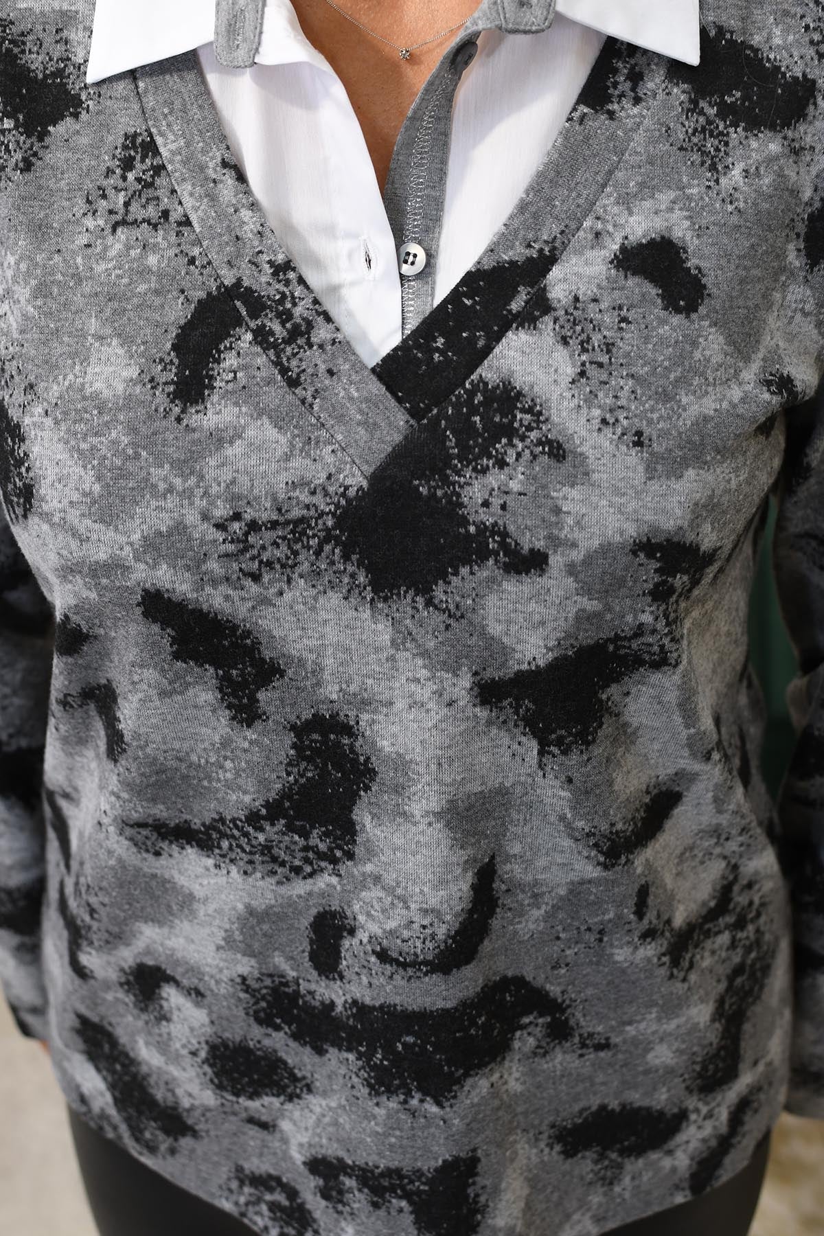 Rabe Multi-Tonal Grey Jumper With Collar Underlay- 53-122354
