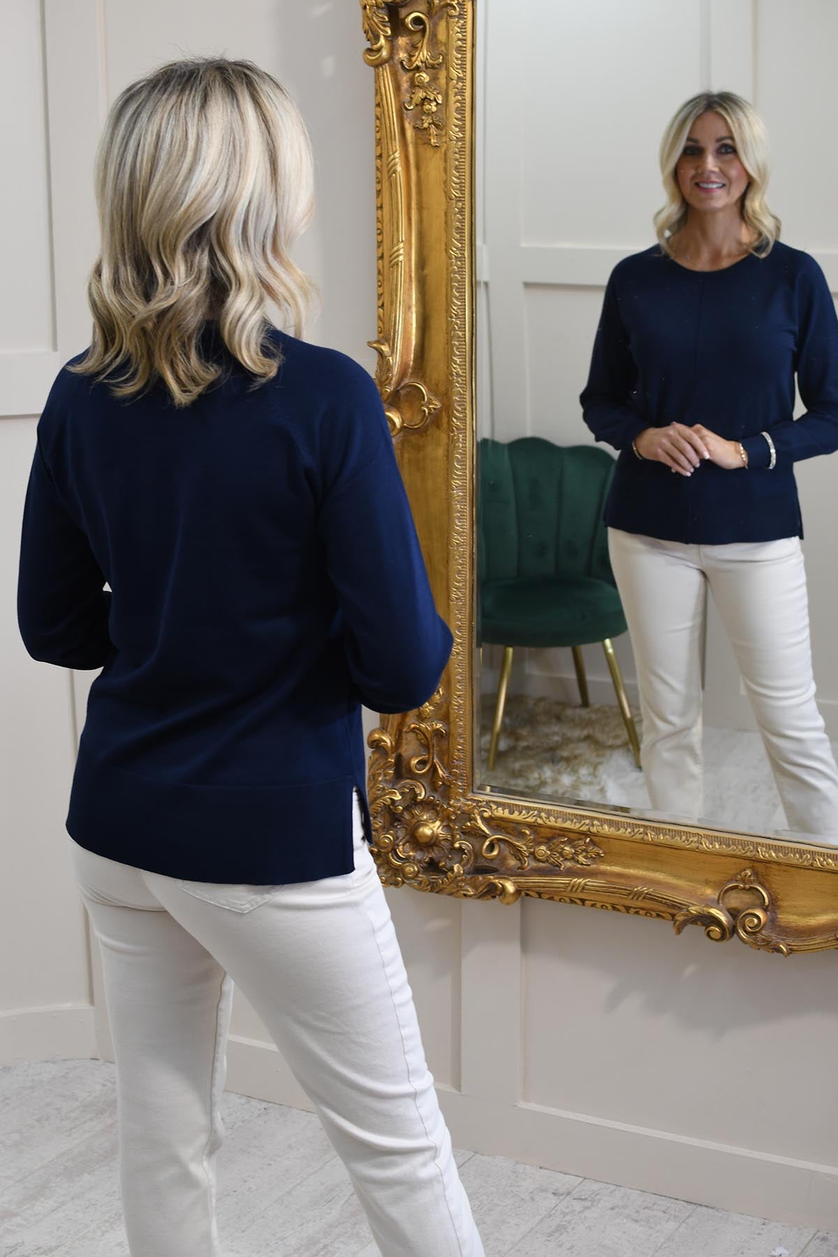 The Sunday Navy Soft Fine Knit Jumper is the perfect blend of elegance and comfort, designed for effortless everyday wear. Crafted from a luxuriously soft fine knit fabric, this jumper offers a lightweight yet cozy feel, making it an ideal layering piece for any season. The classic navy hue ensures versatility, while the flattering fit provides a chic and polished silhouette. Whether paired with tailored trousers for a sophisticated look or dressed down with denim for casual charm, this timeless knit is a must-have wardrobe staple.