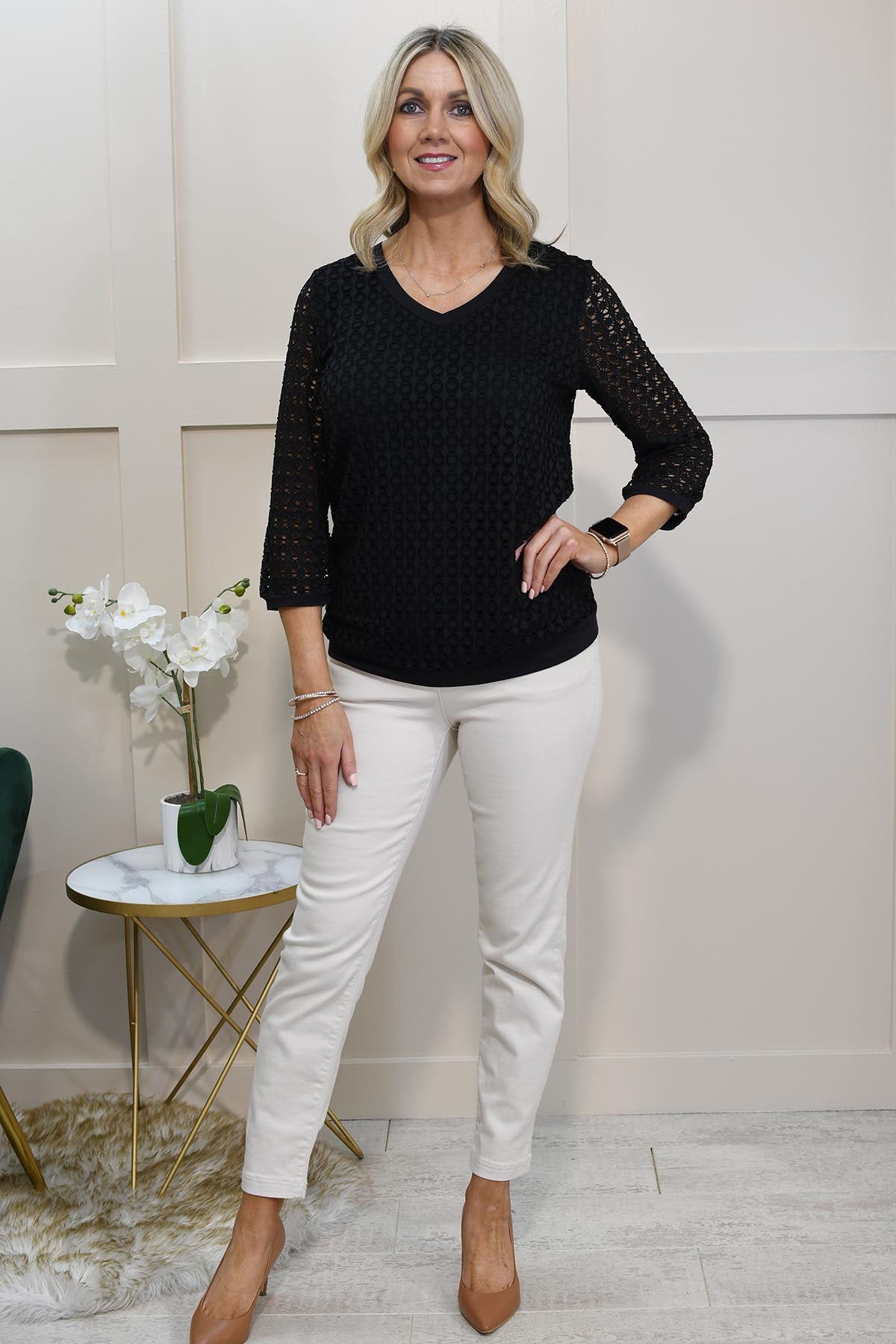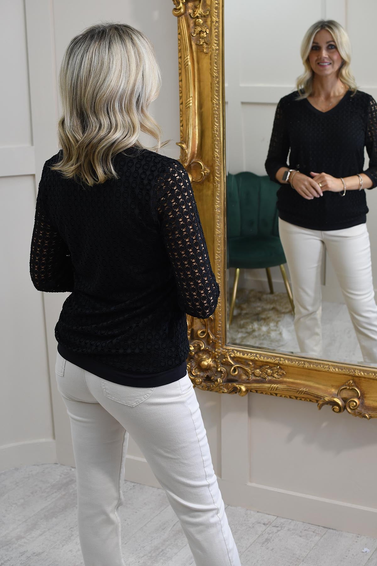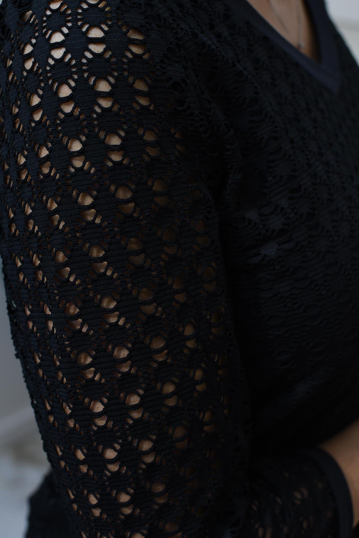 Barbara Lebek Black Needle Lace Pattern Top- 75690052