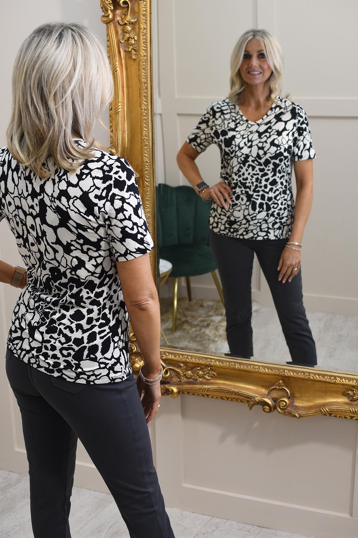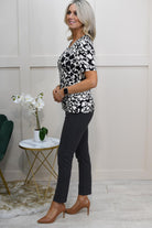Upgrade your everyday style with the Barbara Lebek Black & Panna Cotta Print Top. Designed with 95% polyester and 5% elastane, this top combines lightweight comfort and subtle stretch for an effortless fit. The striking black and panna cotta print adds sophistication to your casual wardrobe, perfect for work or weekend outings. The breathable fabric ensures all-day wearability, while its stretch allows for unrestricted movement. Easy to pair with trousers or skirts, this versatile top is a must-have addition to your wardrobe.