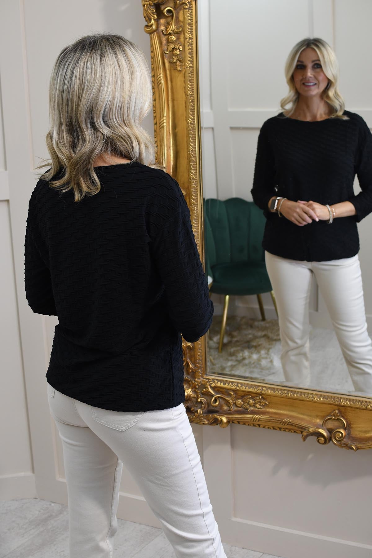 The Barbara Lebek Black Textured Top is a sophisticated wardrobe essential, perfect for effortless day-to-night styling. Crafted from a high-quality blend of 69% polyester, 28% viscose, and 3% elastane, this lightweight yet durable top offers comfort, breathability, and a flattering fit. The textured fabric adds depth and elegance, while the classic black hue makes it a versatile piece for any occasion. Designed for both casual and smart-casual wear, it pairs effortlessly with jeans, skirts, or tailored trousers. Whether for everyday sophistication or evening chic, this Barbara Lebek top is a must-have for modern, stylish dressing.