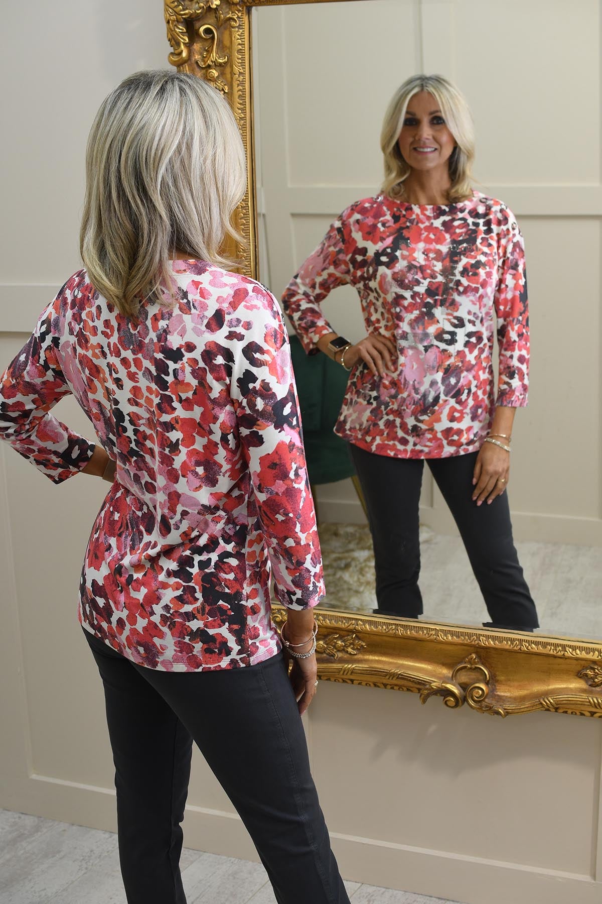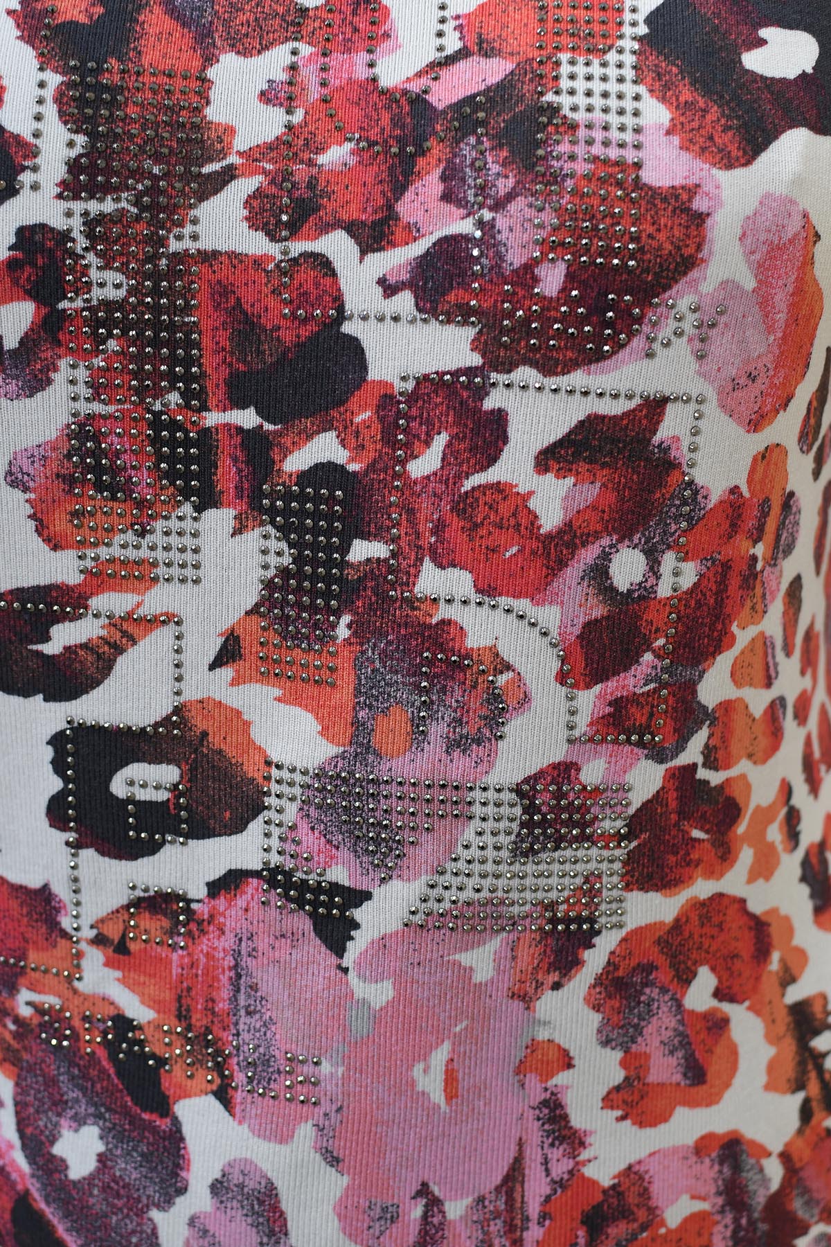 Barbara Lebek Coral, Stone & Off White Animal Print Top With Stud Graphic-75200052