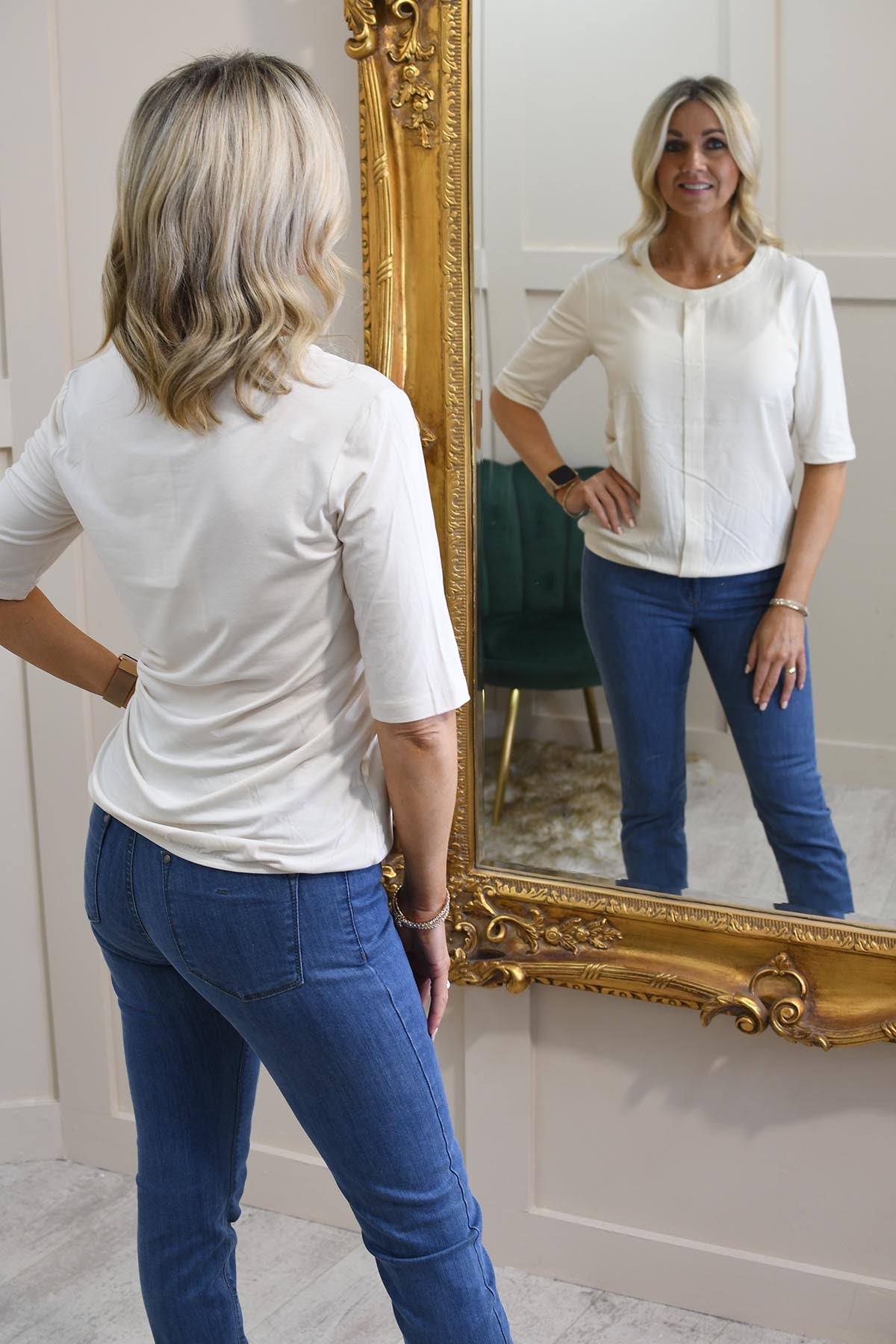 The Barbara Lebek Panna Cotta Top with Elasticated Waist is the perfect blend of comfort and effortless style. Crafted from a soft and breathable mix of 95% viscose and 5% elastane, this lightweight and stretchy top offers a flattering, relaxed fit. The elegant panna cotta hue makes it a versatile wardrobe staple, while the elasticated waist creates a stylish silhouette that enhances your shape. Ideal for casual and smart-casual occasions, this top pairs beautifully with jeans, skirts, or tailored trousers. Whether for everyday wear or summer outings, this Barbara Lebek top is a must-have for chic, comfortable fashion.
