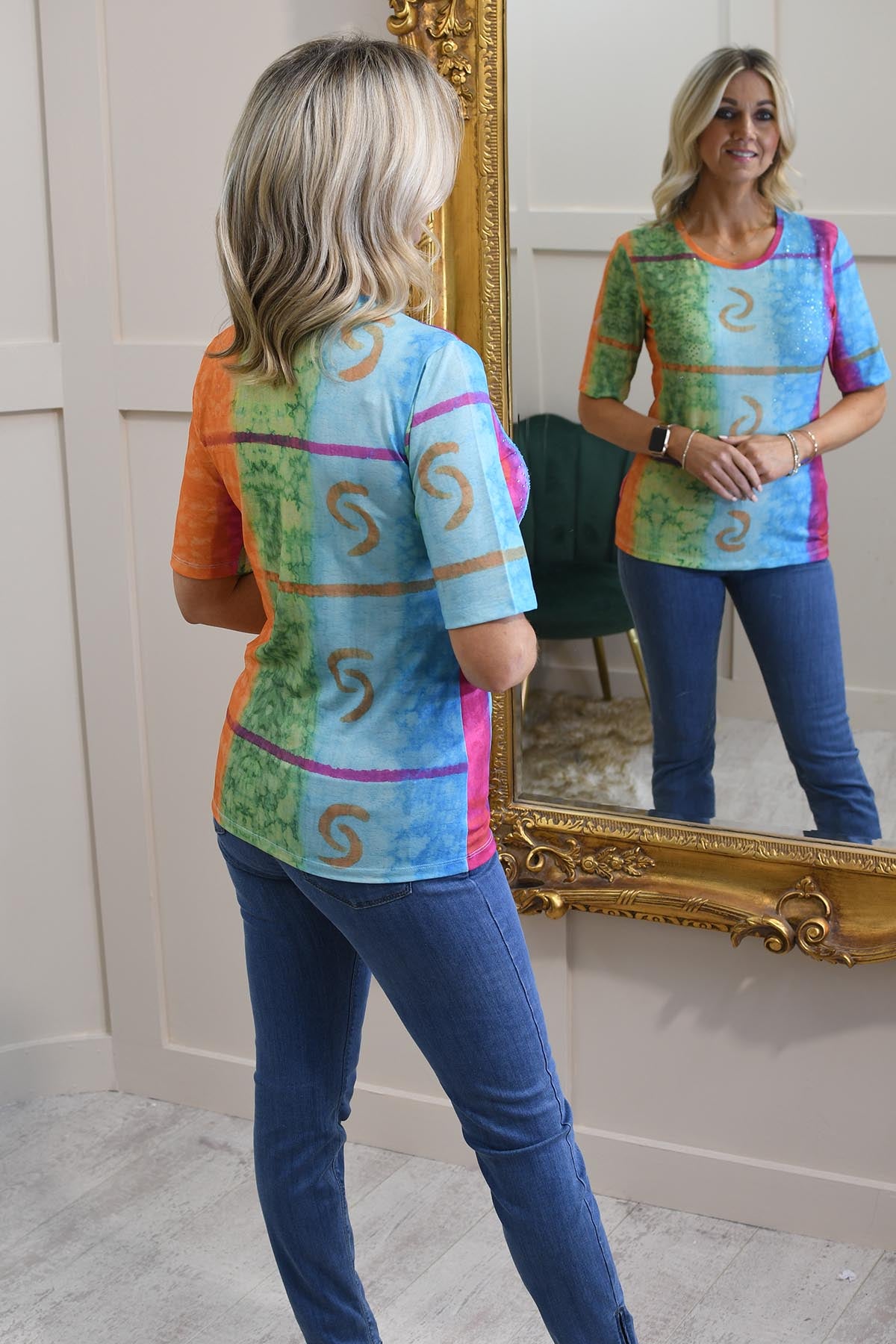 Libra Multicolour Abstract Print Top With Diamante Detail -LT1926
