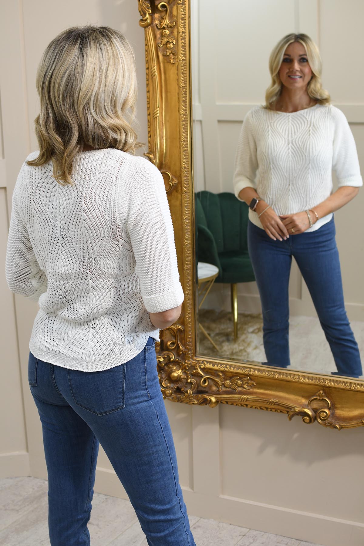 Add a touch of effortless elegance to your wardrobe with the Marble Cream Crochet Knit Top. Crafted from 100% acrylic, this beautifully textured crochet knit offers a lightweight yet cozy feel, perfect for layering. The delicate open-knit design adds a stylish and breathable touch, making it an ideal choice for all seasons. Featuring a relaxed fit, round neckline, and long sleeves, this versatile top pairs effortlessly with jeans, skirts, or layered over a camisole for a chic, sophisticated look. A must-have staple for effortless, feminine style.