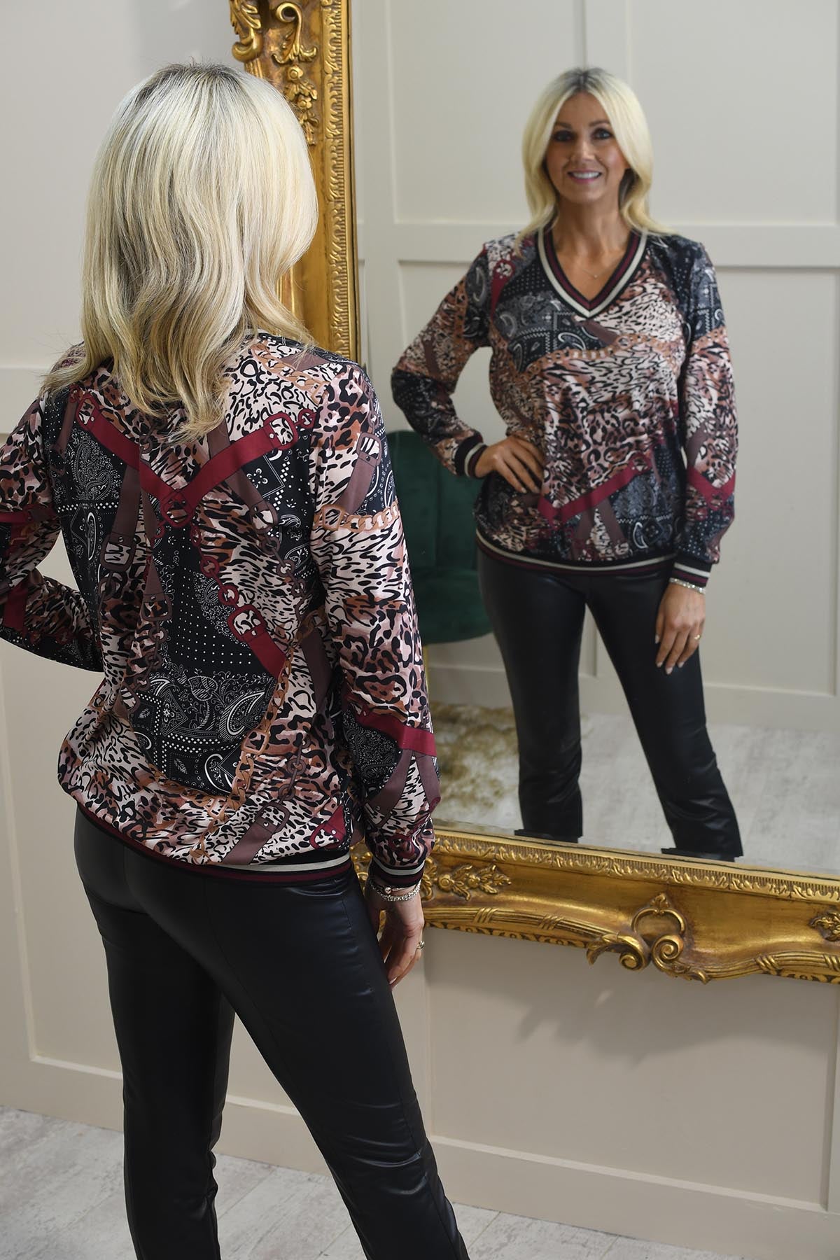 Elevate your wardrobe with the YEW Black, Burgundy & Tan Mixed Print Top, a versatile statement piece that combines style and comfort effortlessly. Designed with a striking mix of bold patterns and warm hues, this top is perfect for transitioning between casual outings and sophisticated occasions.