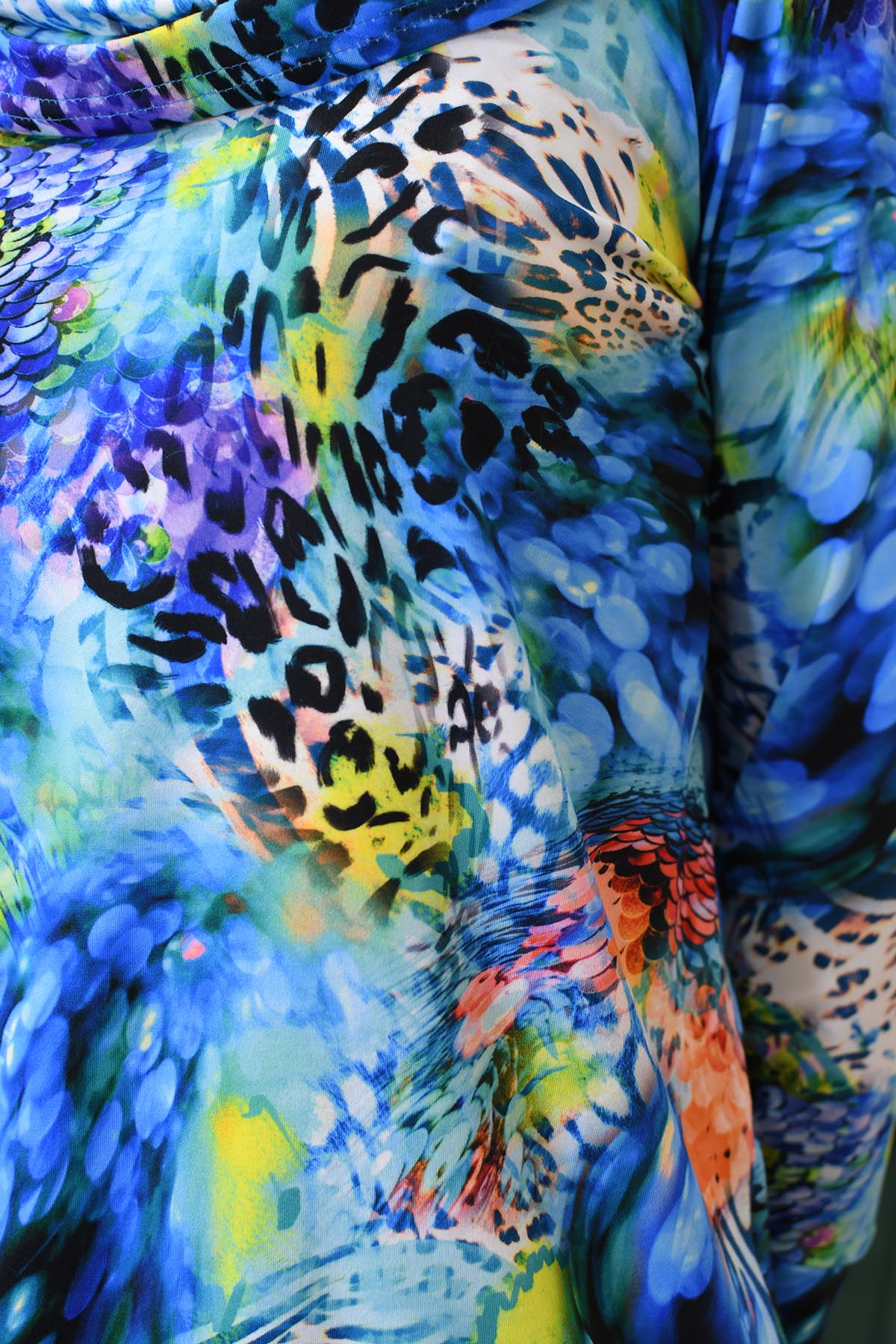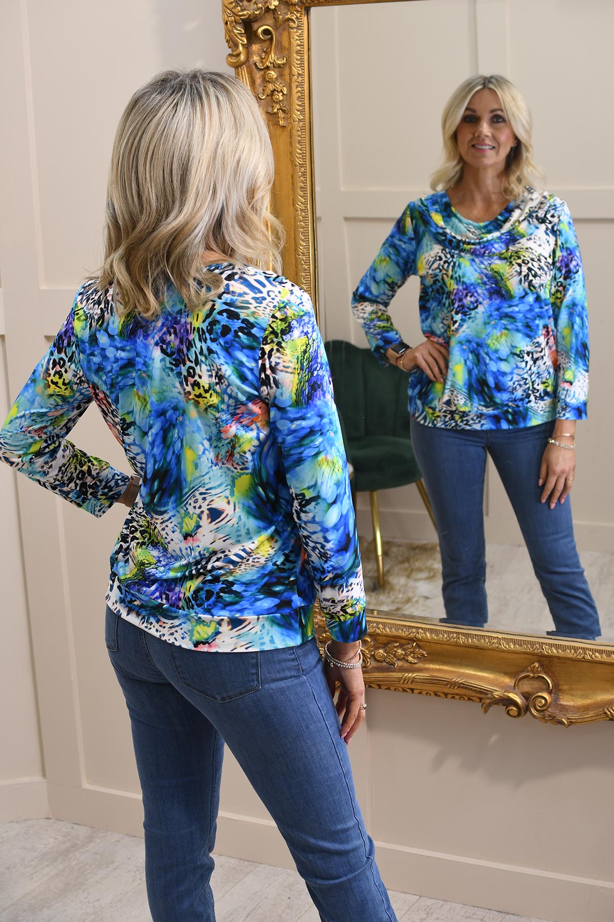 YEW Blue & Lime Mixed Print Cowl Neck Top-2647 Betty
