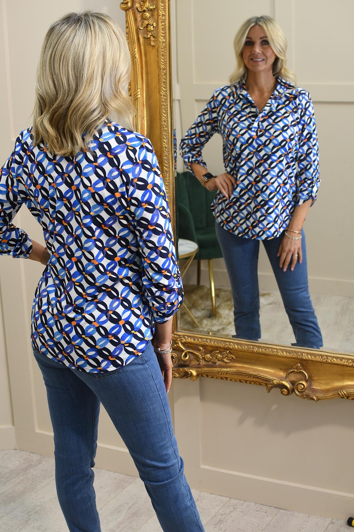 YEW Navy, Blue & Orange Pattern Blouse-3743 Betty