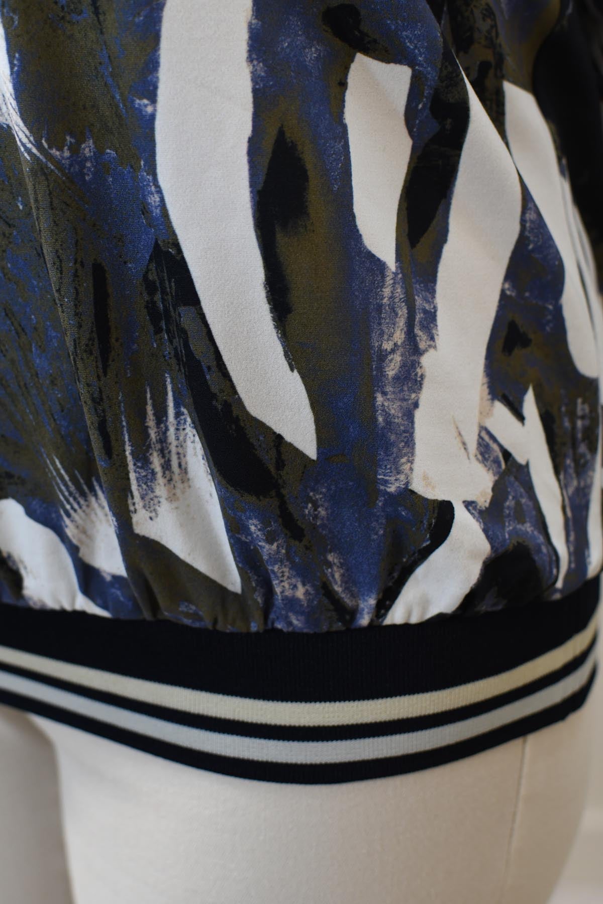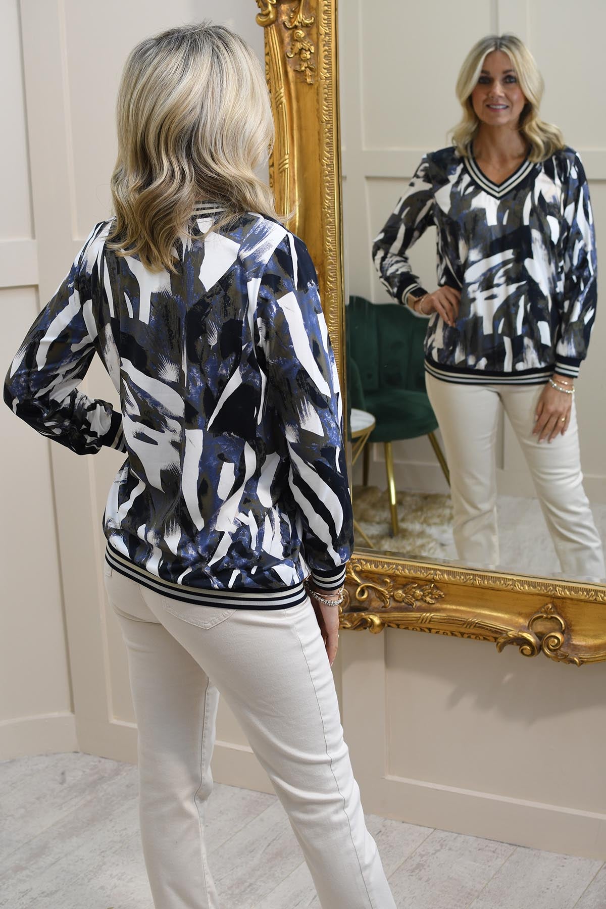 YEW Navy, Khaki & Cream Abstract Print Top With Sports Cuff-3825 Carly