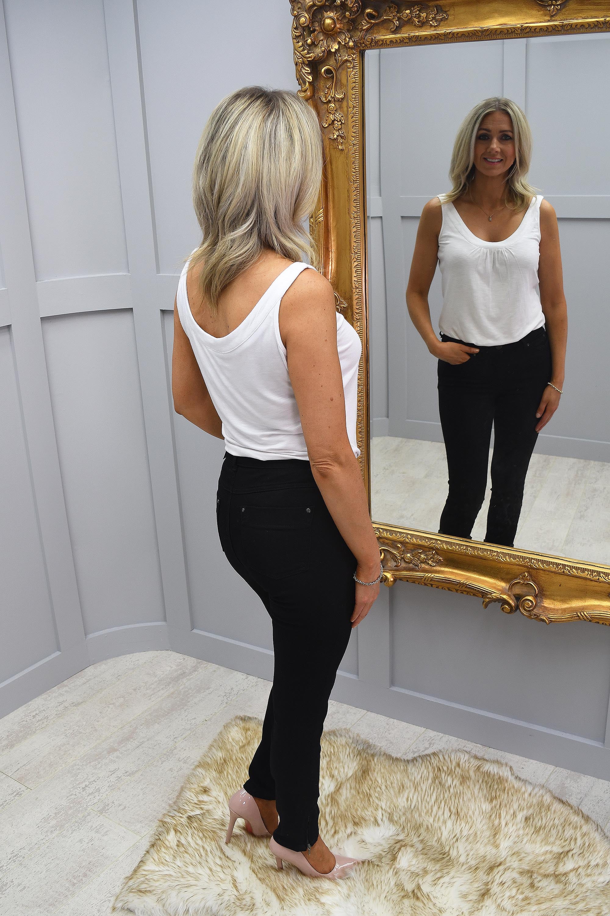 Transform your shape with our black CRO Magic Fit Next Level Jeans. With EMANA Bioactive crystals embedded into the yarn, it absorbs body heat and transforms the heat into infrared rays, which improves blood microcirculation. This results in an improvement in skin elasticity and reduces cellulite. The difference in 6 weeks everyday wear of the black CRO Magic Fit Next Level Jeans will leave you speechless! The secret is in the name!!! These super comfortable and stretchy straight jeans are perfect for everyday wear with a fit that provides extra support to immediately improve your shape by lifting and smoothing every area. Front and back pockets accentuate all your best features and will leave you feeling fabulous. If you want a premium brand of jeans that incorporates style, comfort and quality; then look no further than our black CRO Magic Fit Next Level Jeans. For the best fit from your black CRO Magic Fit Next Level Jeans our Style Team recommends choosing a size down from your normal everyday jean size.