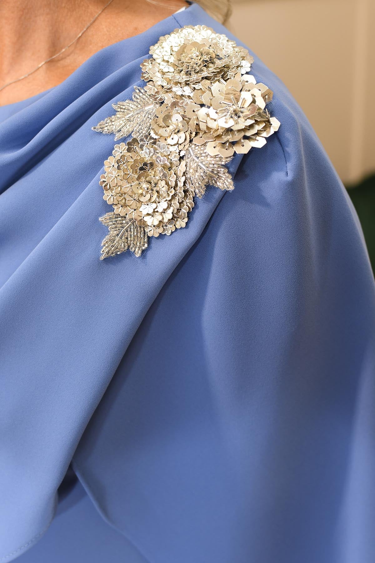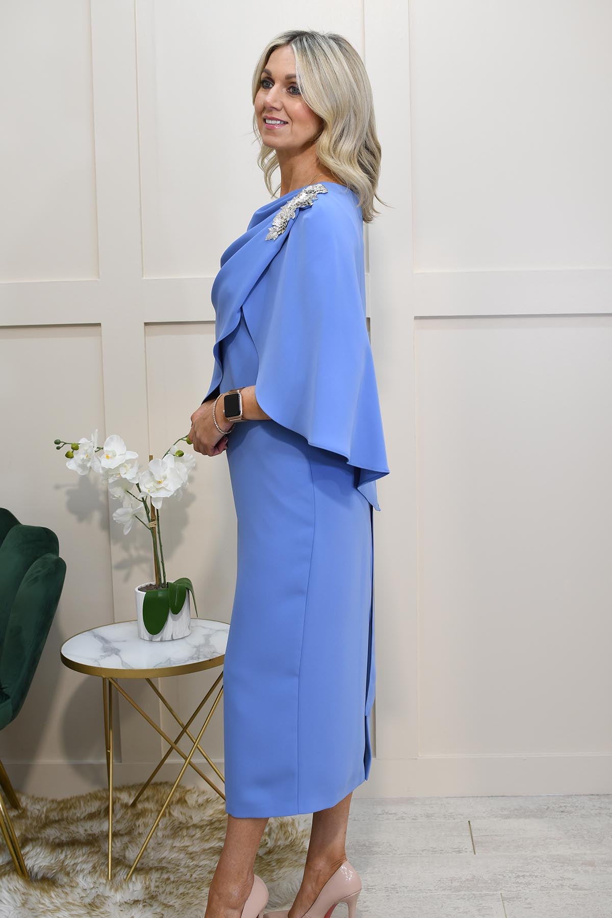 Carla Ruiz Azure Cape Dress With Sequin Flower Detail-51608
