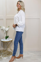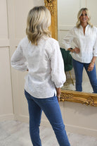 The Bianca White Sheer Blouse With Embroidered Pattern is a timeless and elegant piece that exudes sophistication. Crafted from 100% cotton, this blouse offers a soft, breathable, and lightweight feel, making it perfect for warm-weather wear or stylish layering. The sheer fabric adds a touch of femininity, while the intricate embroidered pattern creates a delicate, refined look. Designed with a relaxed fit, it drapes beautifully on the body, ensuring all-day comfort and effortless charm. Ideal for both casual and dressy occasions, pair it with jeans or tailored trousers for a polished, chic ensemble.