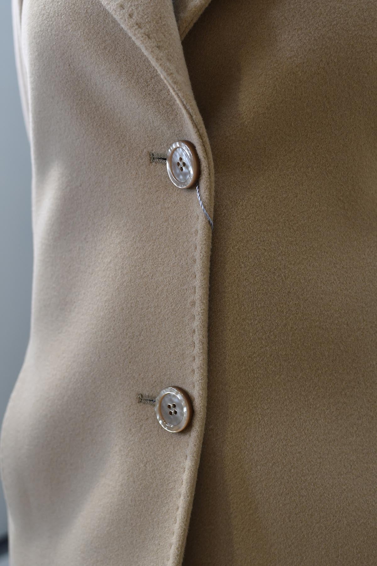 Dieser exquisite Staubmantel präsentiert sich in klassischer Kamelfarbe, die dezente Eleganz und zeitlosen Stil ausstrahlt. Er ist eine vielseitige Wahl, die zu vielen Outfits und Anlässen passt.
