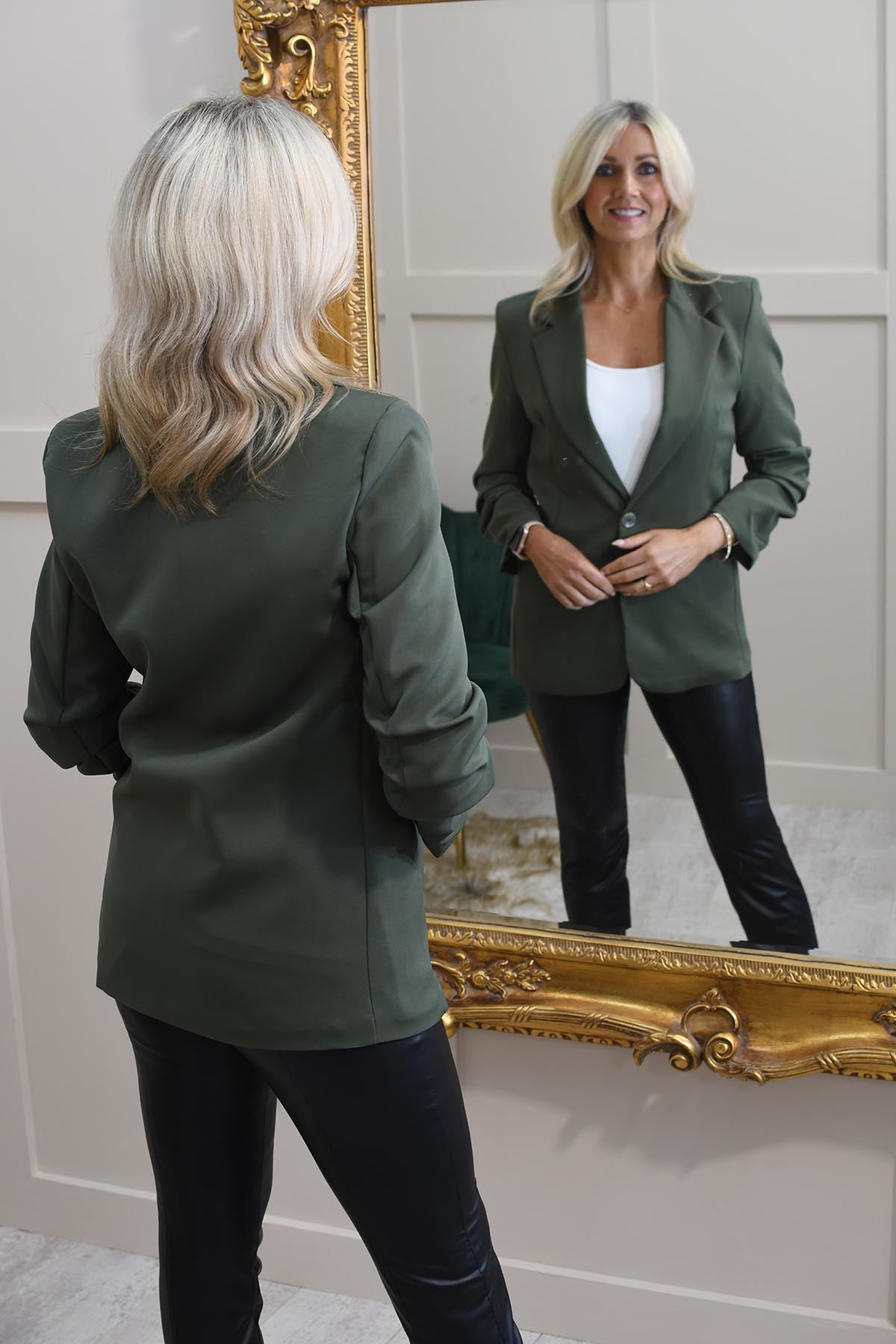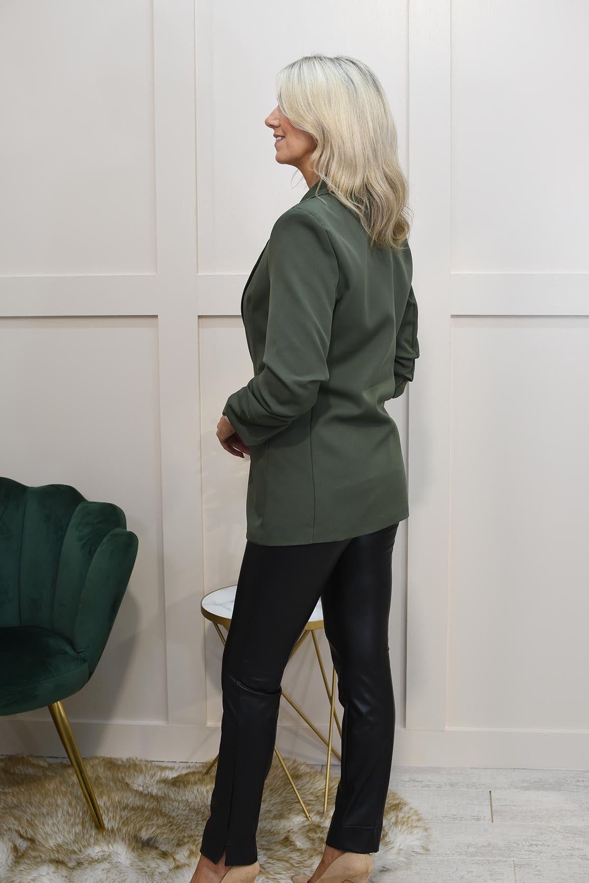 Kyla Khaki Blazer mit gerafften Ärmeln – 50210