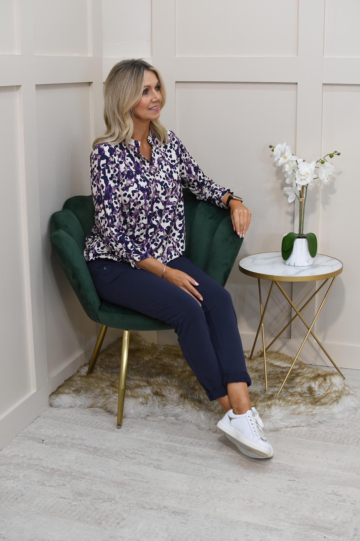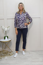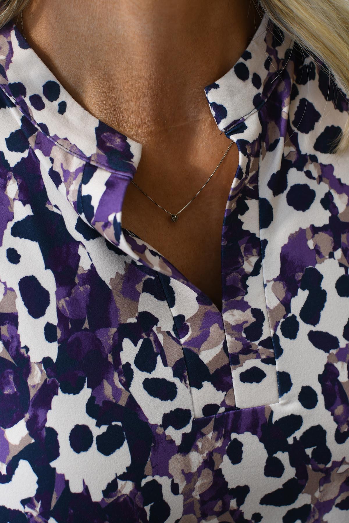 Add a sporty twist to your everyday style with the YEW Print Blouse in Purple, Taupe and Cream. Crafted from 70% viscose and 30% polyester, it offers breathable softness with a smooth, lightweight finish for all-day comfort. The abstract print brings a bold, modern edge, while the contrast sports cuffs give the design a casual-chic feel. Perfect for pairing with jeans, trousers, or skirts, this versatile top works just as well for off-duty days as it does for smart-casual outings. A stylish separate for women who love prints with a contemporary, relaxed flair.