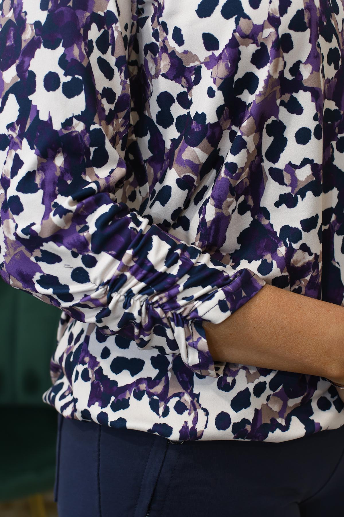 YEW Print Blouse with Elasticated Waist Purple, Taupe & Cream 4027 Adele