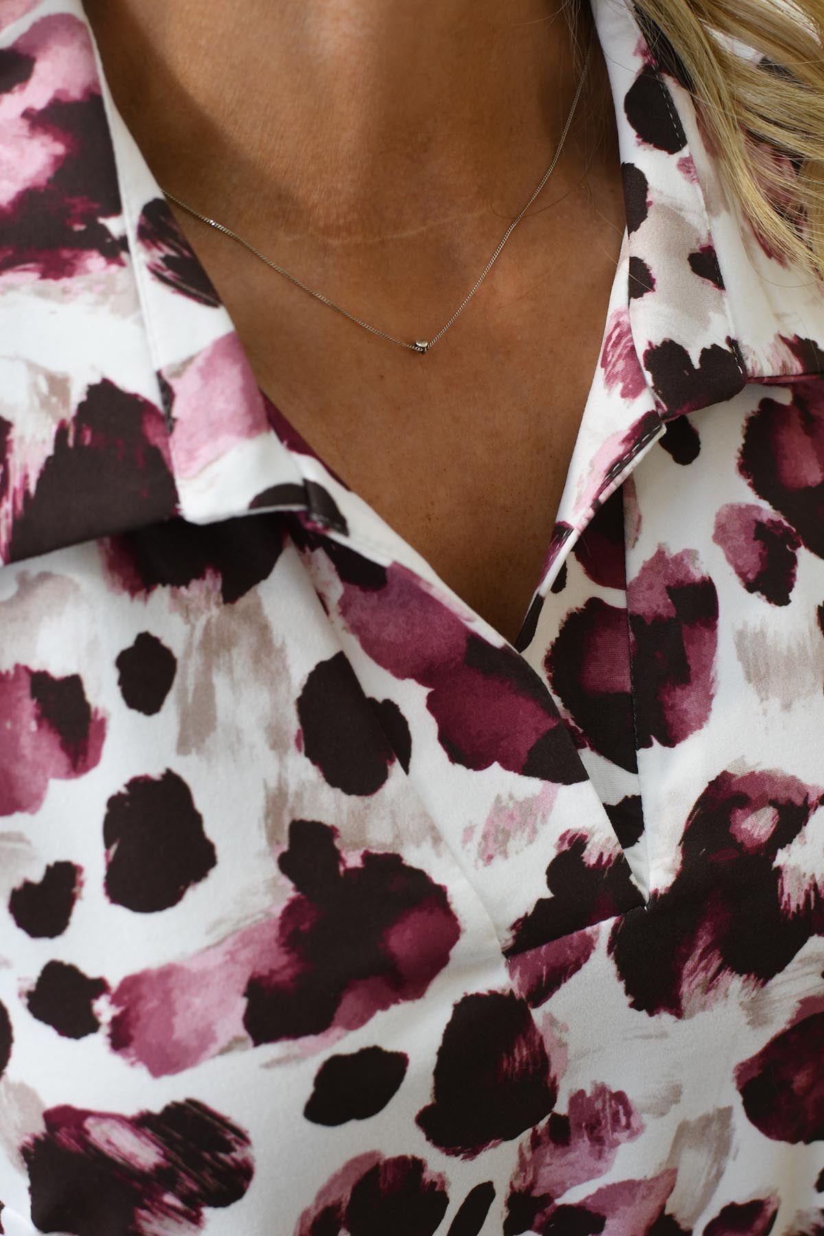 YEW- Animal Print V-Neck Blouse- Mauve- 5002 Trina