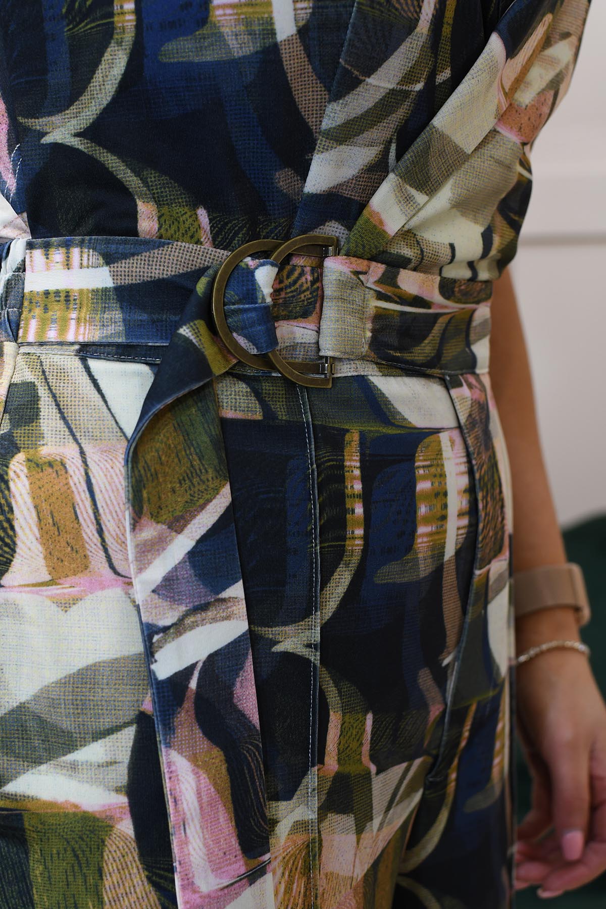 K.Design Navy, Khaki & Cream Crossover Jumpsuit With Belt - P995